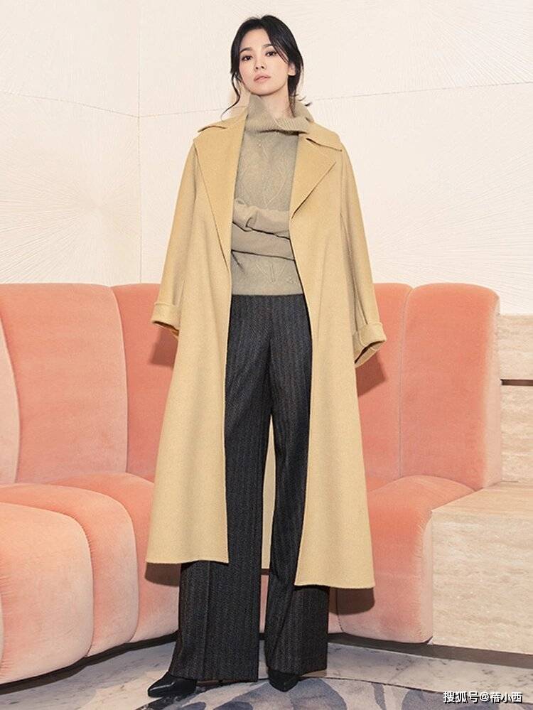 161的宋慧乔又带火了一种新穿法:长款大衣+阔腿裤,显高又洋气
