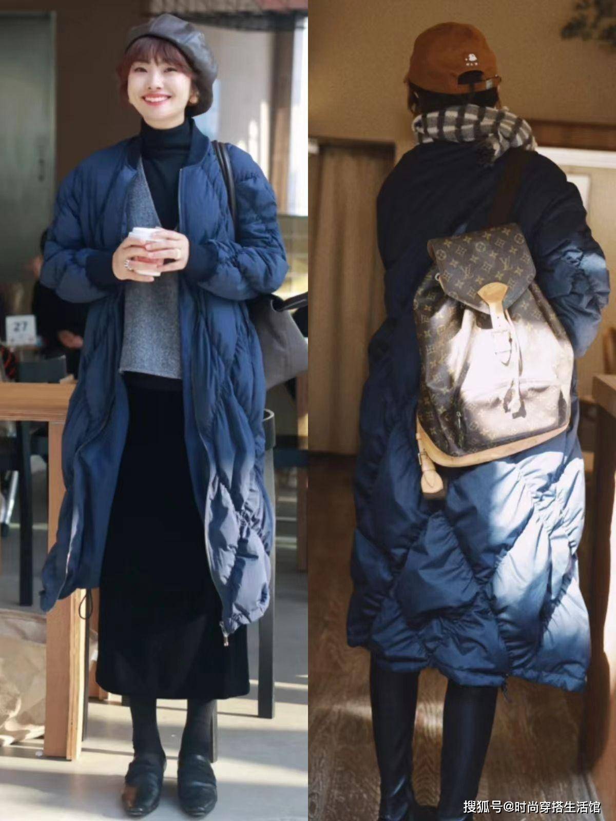 然后能够解决羽绒服单调老气的有效手法是叠穿,同样是基础款,融入了叠穿手法之后,形象立刻发生大变化,这就是叠穿受欢迎的原因。