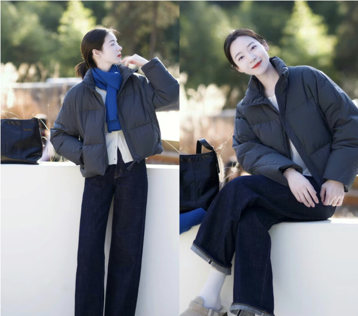若是从实用的角度出发,想要找到多款驾驭起来特别舒适自在的服饰,建议大家也可以挑选一些深色的短款羽绒服。