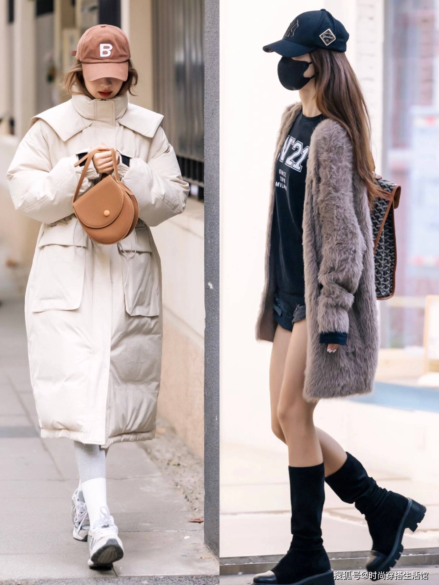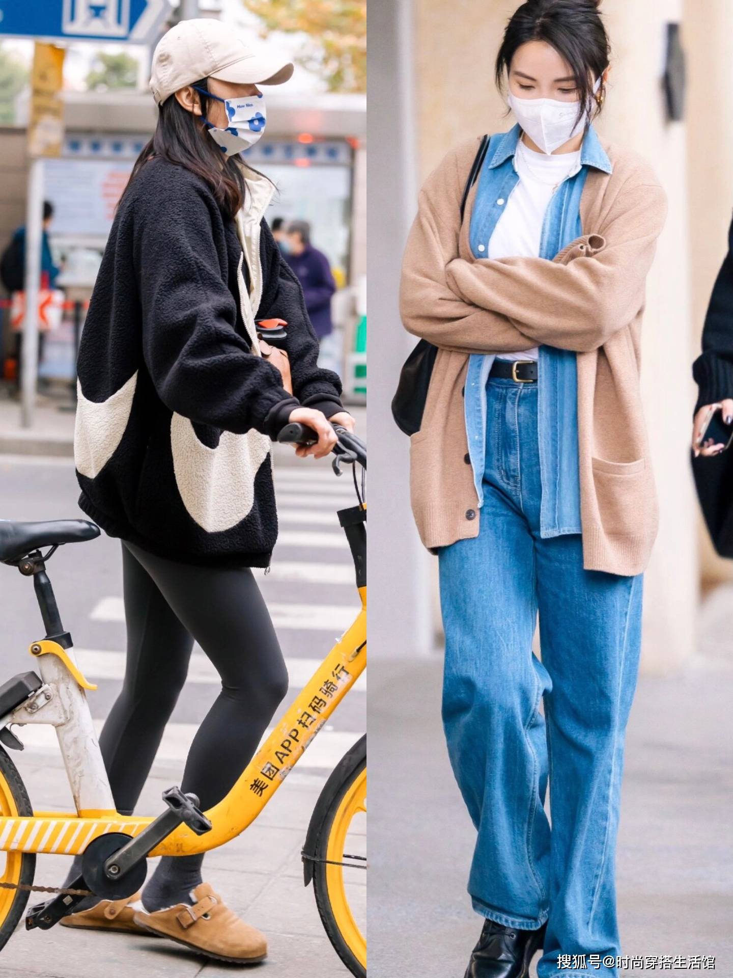 最后,真正有气质的女人给自己买衣服的时候也会去关注材质,只有用高级的材质来展现你的时尚感,才更有利于凸显出魅力和好品味,那么日常生活中大家买衣服的话就一定要避免廉价的材质。像左边这身棉服材质,看上去就比较普通廉价,褶皱痕迹也很明显,所以穿在身上特别老旧。