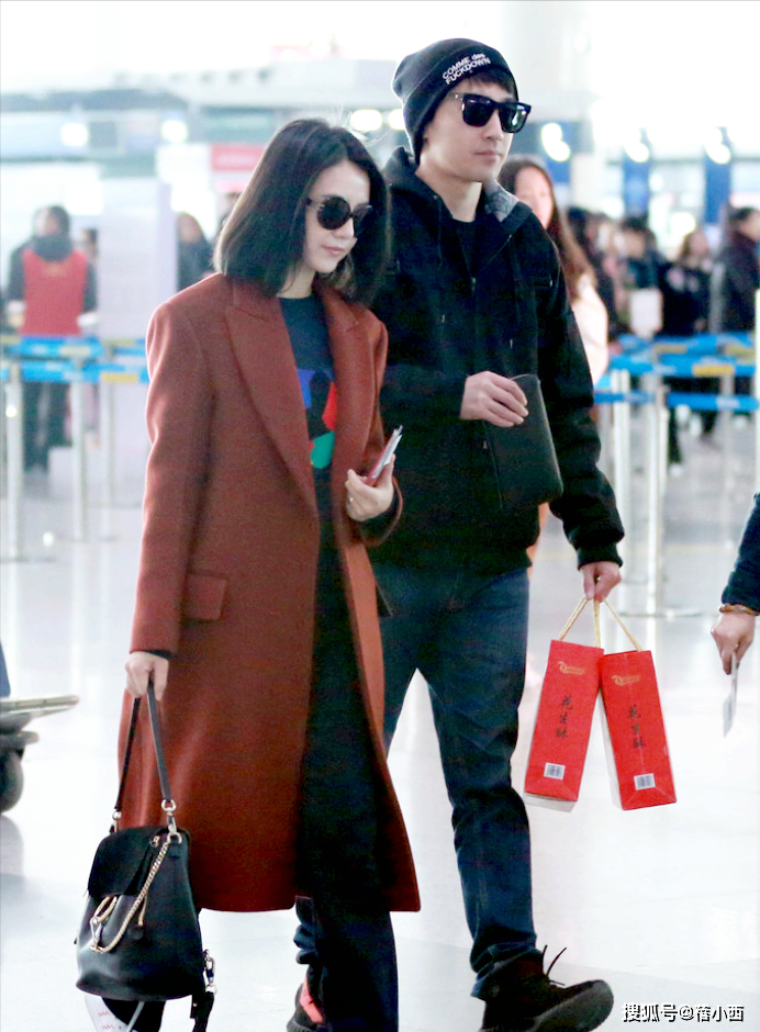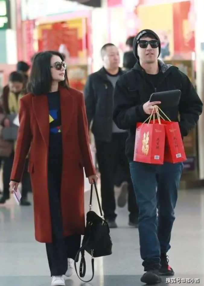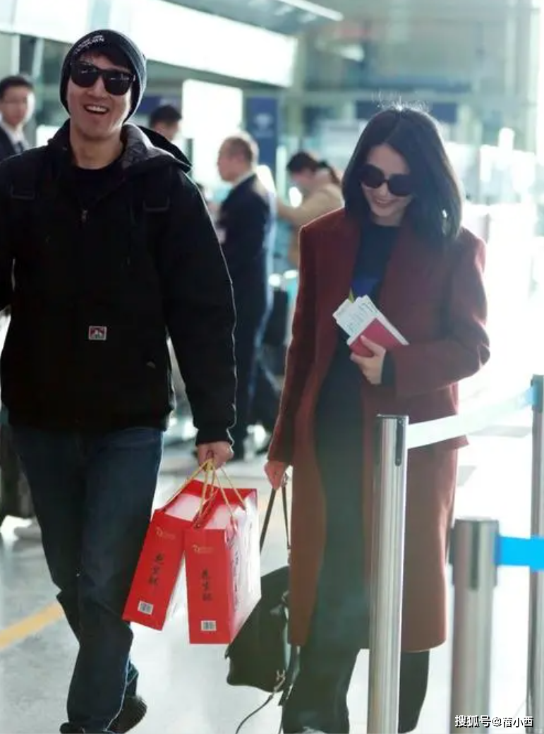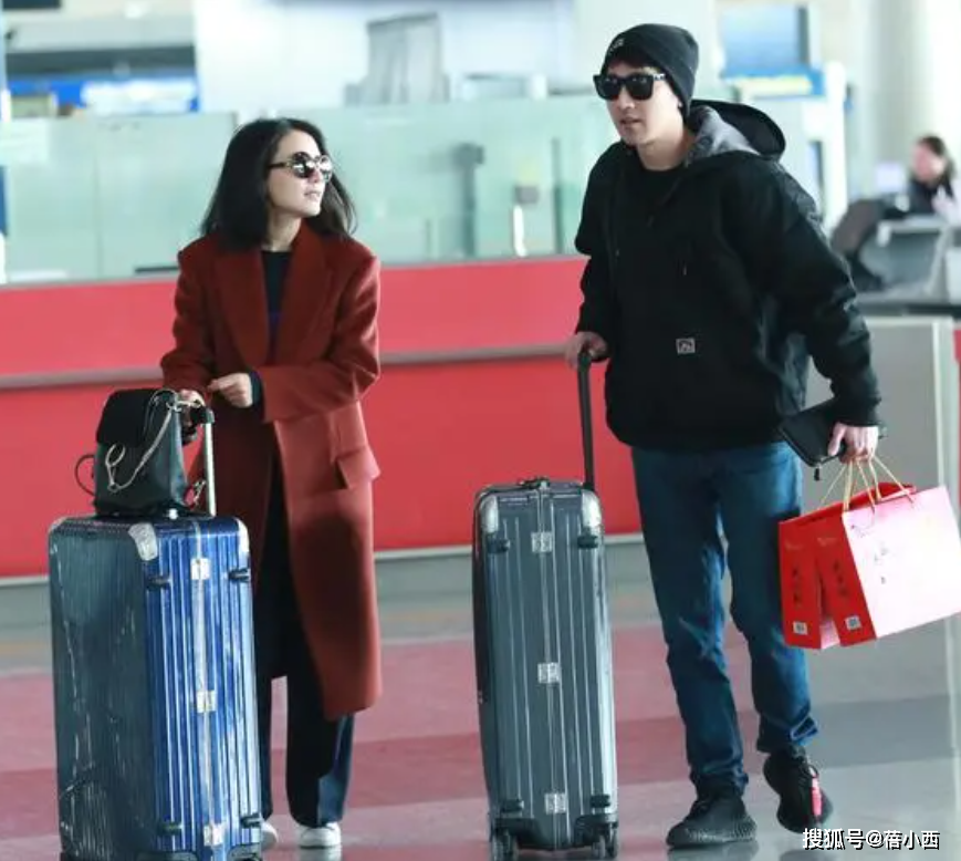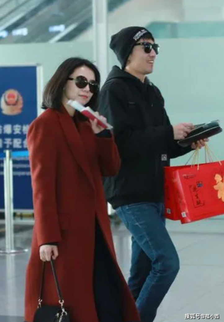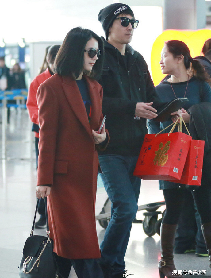 高圆圆赵又廷回家过年!穿红大衣配阔腿裤真时髦,全程笑脸好幸福
