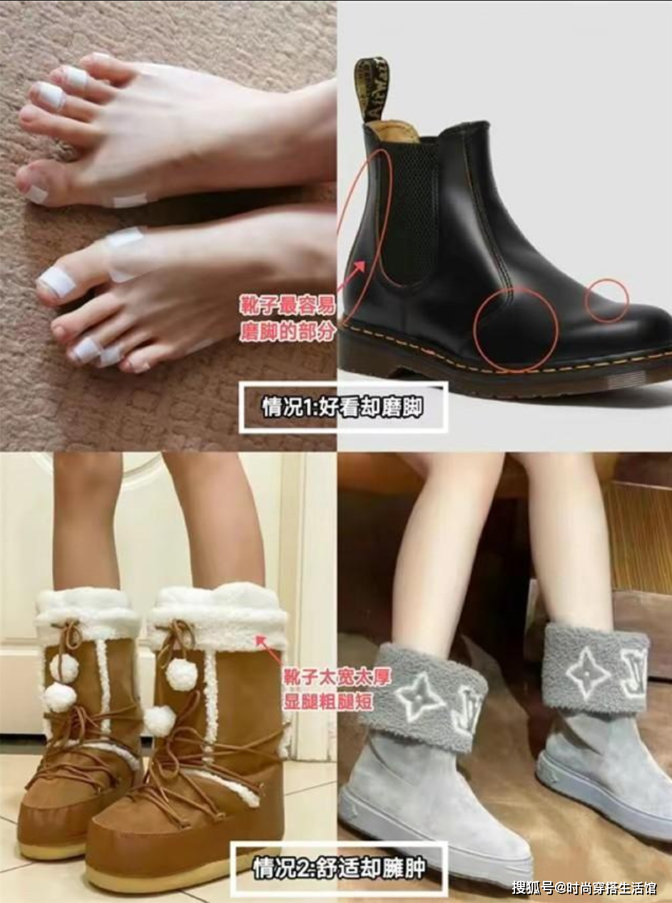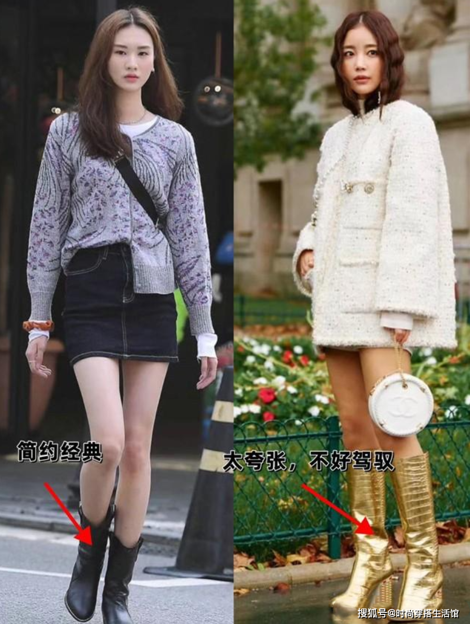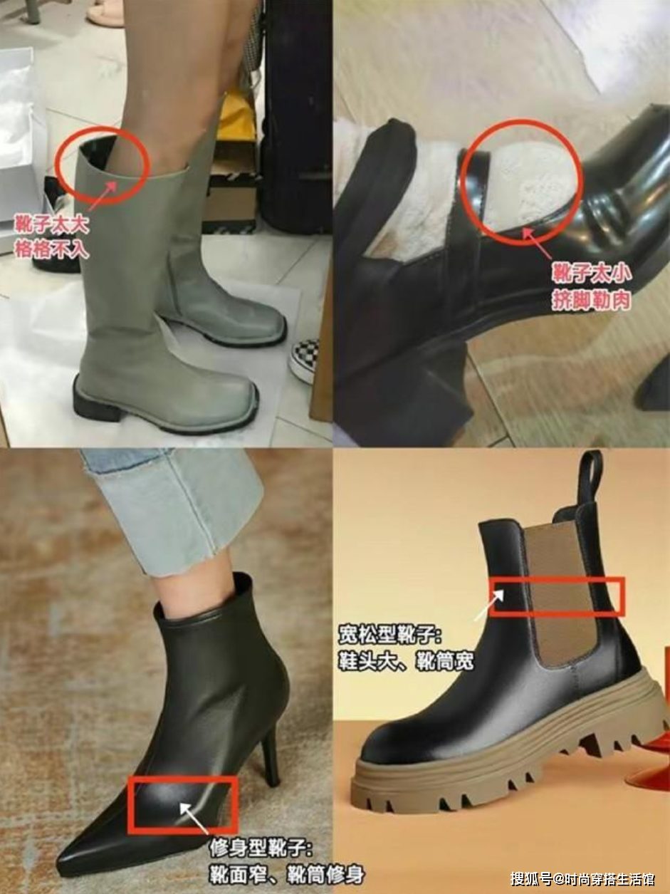 腿粗的集美们要避开太过紧身的靴口,不小心勒出肉肉可是很尴尬的哦~当然也要避开太过宽松的靴口,因为它会横向拉宽你的腿围,更显胖了。靴筒的选择技巧和靴口差不多。