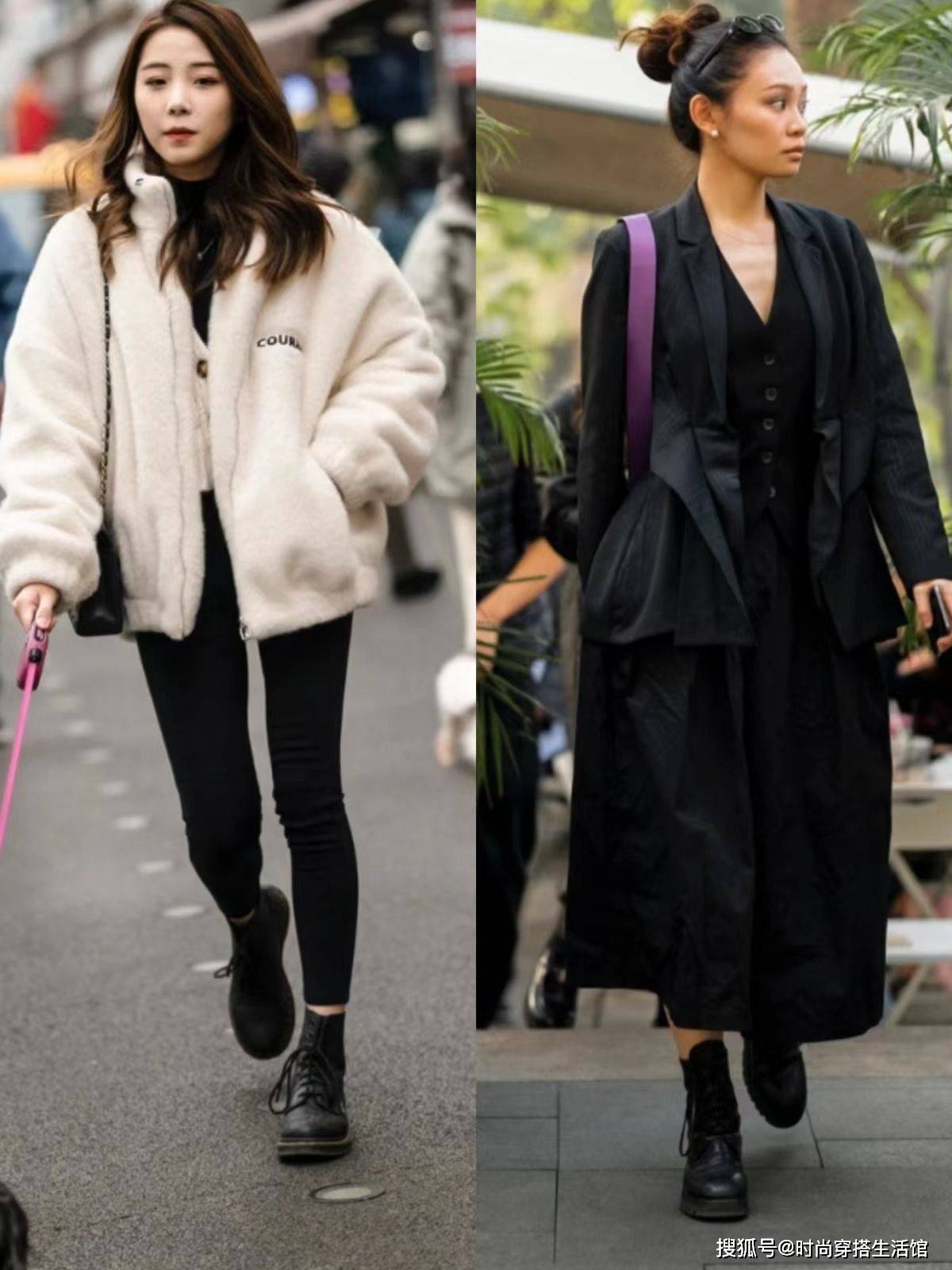 马丁靴虽然看上去都差不多,但不同的材质还是会有细微的差别,优秀的穿搭就是要精致到每一个细节。硬皮材质的马丁靴风格更酷帅,鞋子硬挺有型线条感强,对于脚型不佳的人来说可以利用一下修饰脚型。