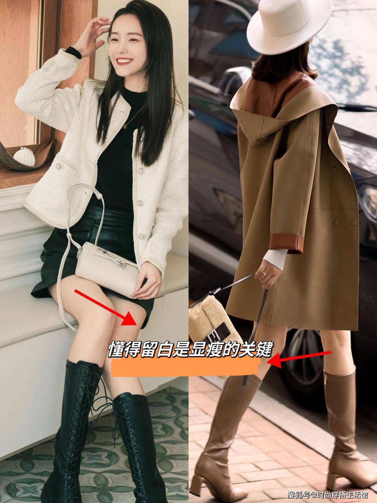 什么是“上下左右”呢?别着急,跟着小编慢慢来你就明白啦。上下指的是靴子的长度,一双好的长筒靴首先要做到长度合适显腿长。一般说来,膝盖上下的距离都很显高,但是如果你小腿粗,那么一定要避开恰好在小腿肚处的靴筒长度。