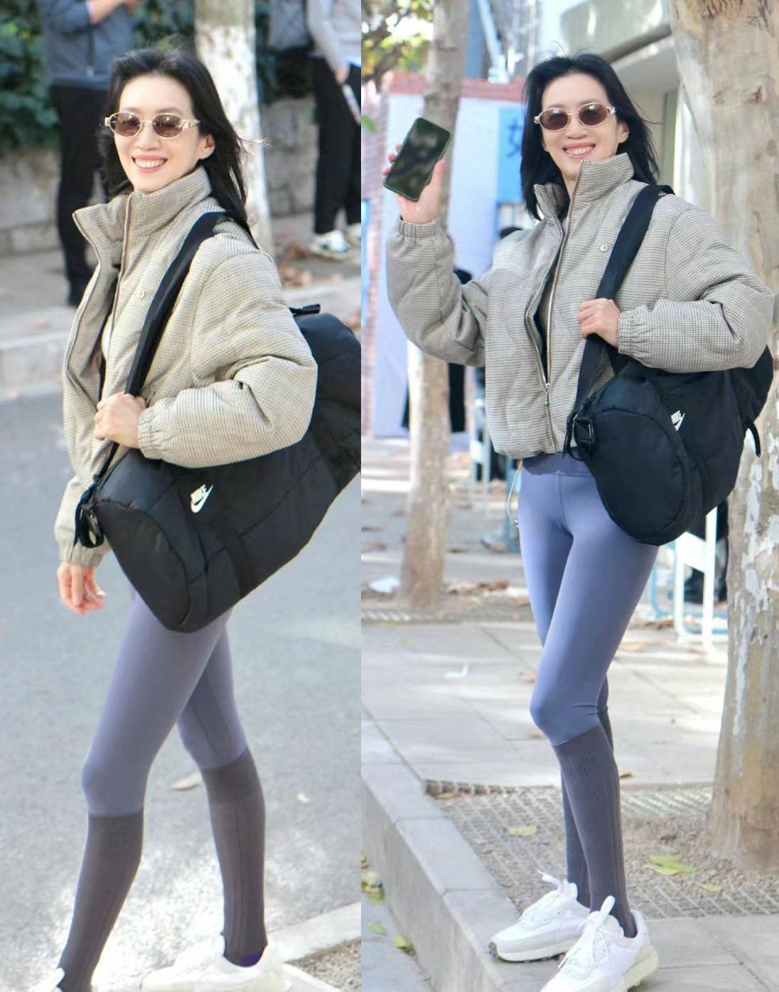 比如说搭配这种羽绒服,打底裤极其窄的裤筒设计,就能很轻松的协调上下装的观感,避免突显出什么显胖的感觉。当然短外套与打底裤的衔接感可能不够流畅,可以内搭一些衣摆偏长的上装,形成和谐的层次感。