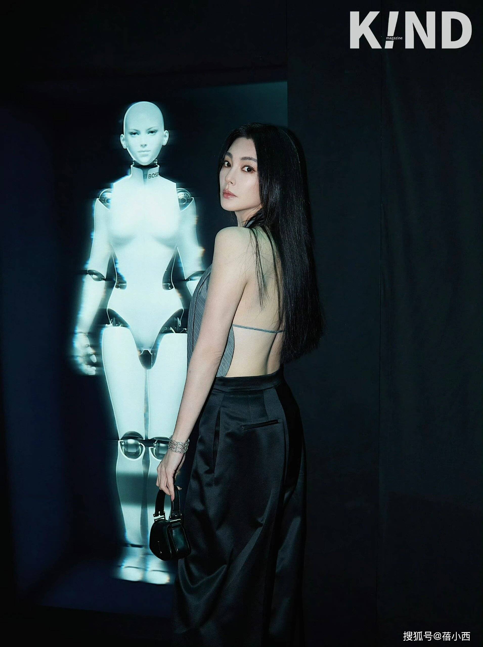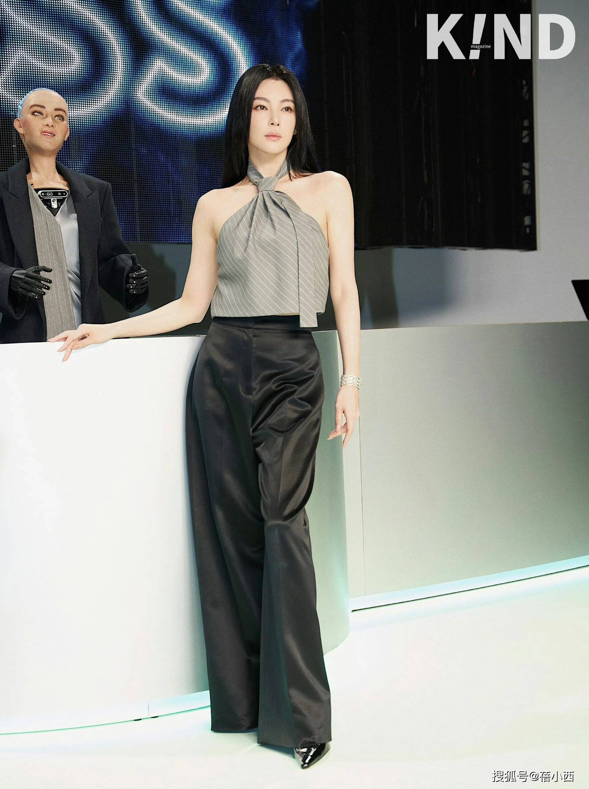 具体来看,这一件上衣采用的还是西装面料,这种面料的服装在日常生活中也时常出现,因为它自带高级感,像这样的挂脖上衣再加上这种高级的西装面料,可以让整个造型都充满着高级感,简简单单,同时又很有质感。