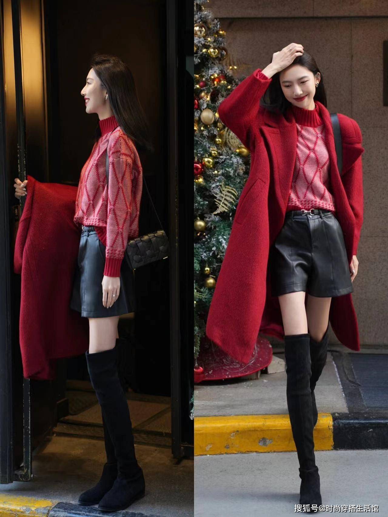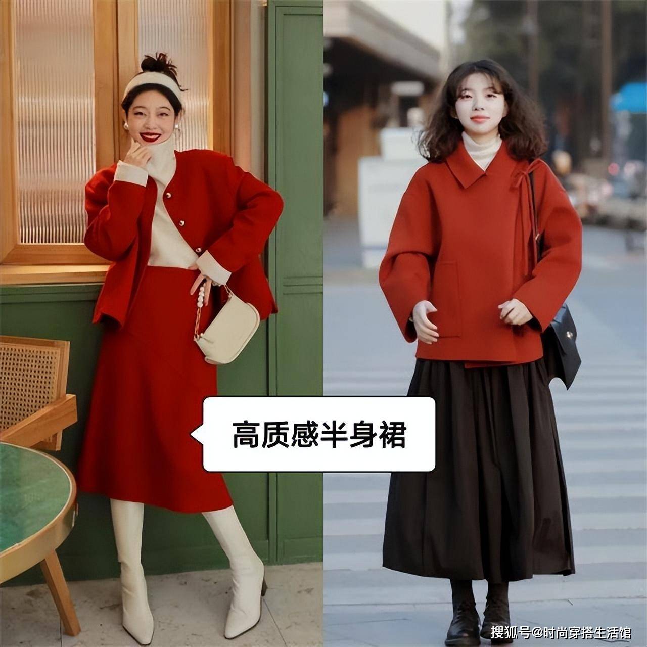 过年回家请一定要这样穿:红色外套+半身裙,洋气喜庆,美成焦点