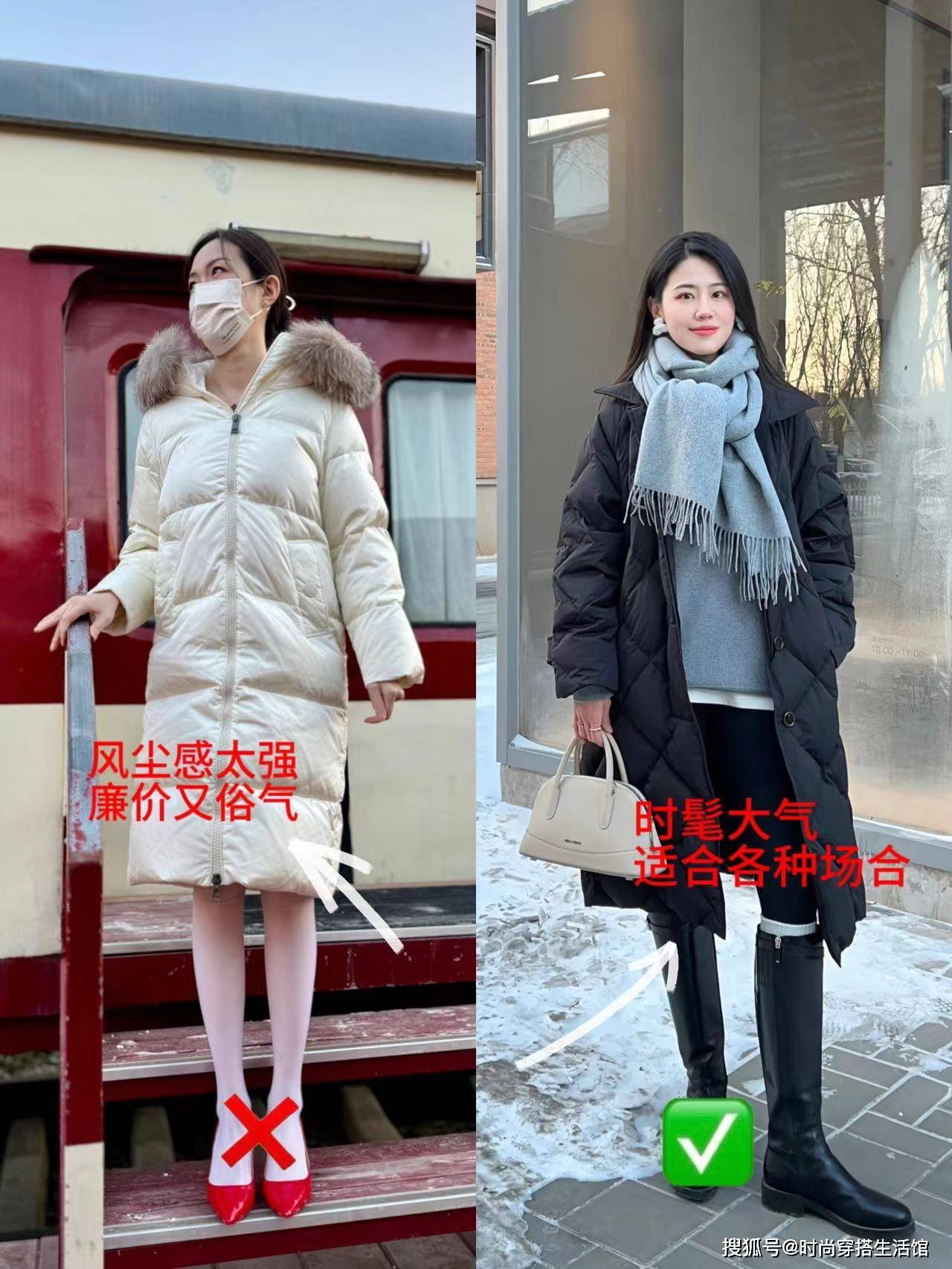 >>羽绒服下面一定不要搭高跟鞋,过年回家这样穿多美