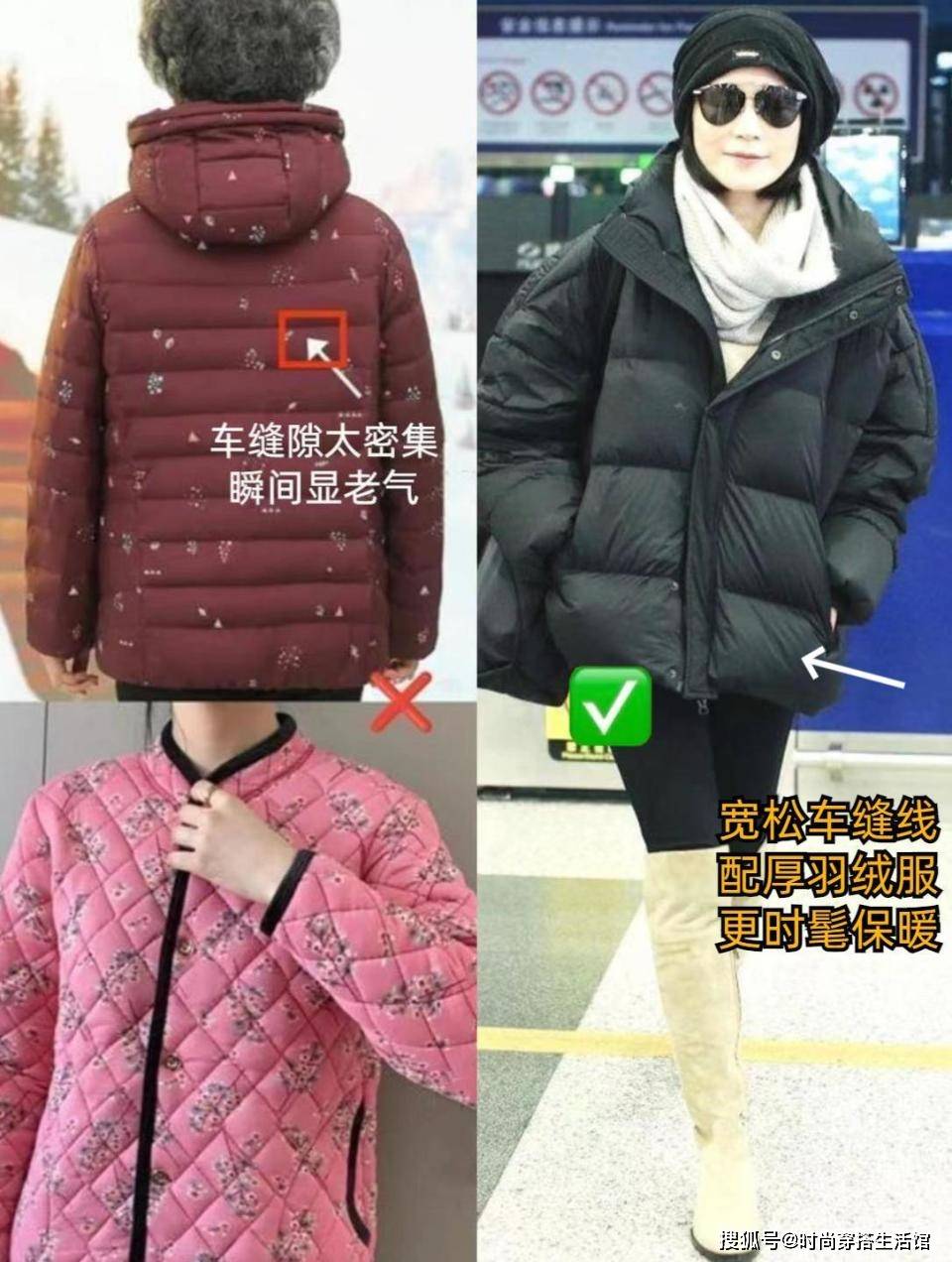 或者去选之前有跟大家讲过的菱格纹的,菱格纹会显得很时尚也很显瘦。如果是外穿的羽绒服,尽量的不要去选窄行缝的,会显得非常的有年代感,显老气。