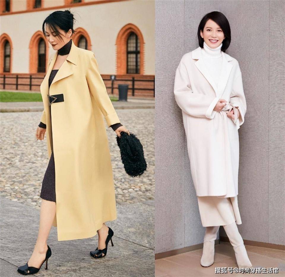 在俞飞鸿的大衣搭配当中,我们能发现她的搭配是有许多技巧的。第一点就是要留白,大多数人秋冬搭配太厚重,全身包裹得严严实实的从而导致了臃肿感,这时我们不妨去参考一下俞飞鸿的思路,颈部或者是腿部进行留白,加强了呼吸感,这样的打扮远远比那种包裹性很强的搭配看上去更时髦有气质。