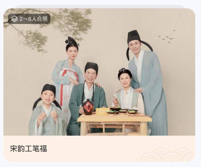 其中,通义照相馆提供了 12 套经典风格的写真模板,包括千里江山、国风东方、时光回忆、唐宫夜宴、书香工笔等,每套模板都可支持 2-8 人的家庭组合。只需上传自己和家人的照片,就能生成各种风格的全家福写真。