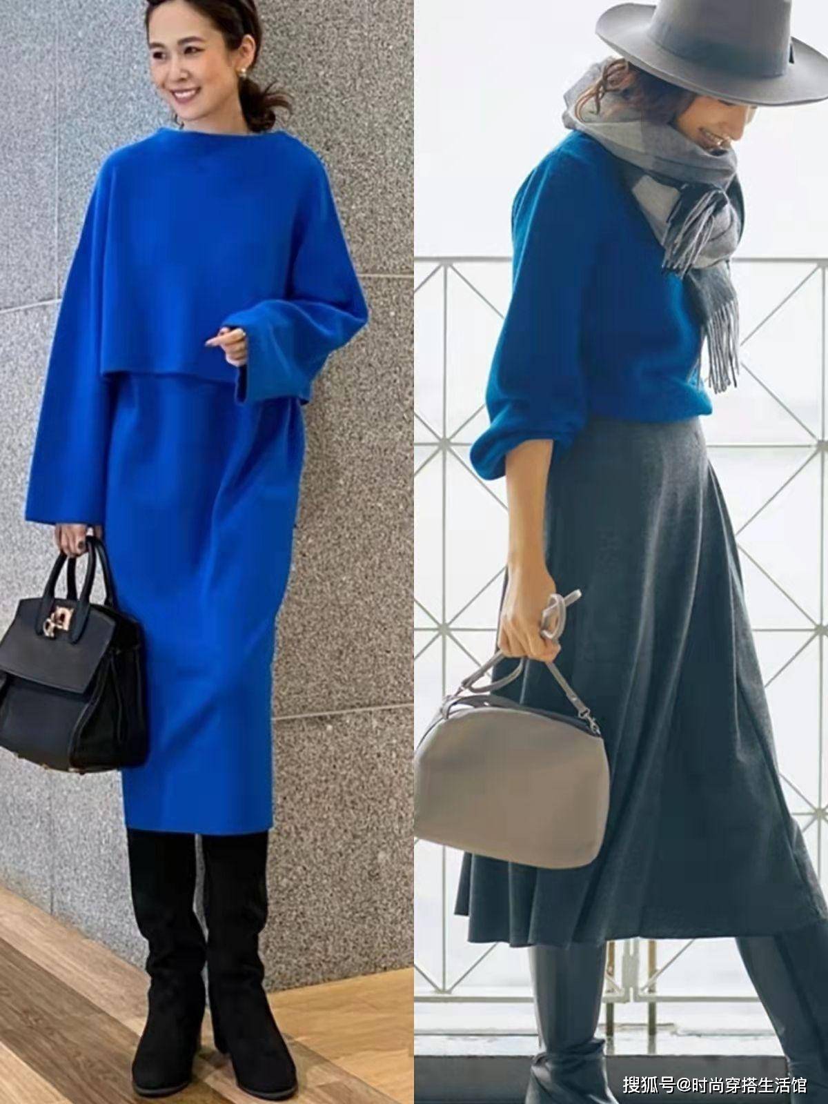 蓝色给人的第一印象是安静的,应用于中年女性穿搭中,更能衬托出知性、稳重的气质,同时对肤色也具有很好的衬托效果。常见的蓝色有孔雀蓝、天蓝色、雾霾蓝等,清爽之余又不失女性的优雅气质,视觉上也不会看起来太过老成,洋气不减。