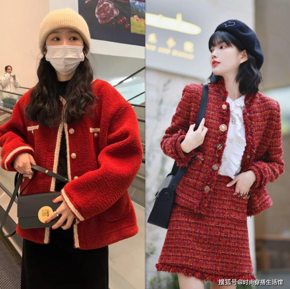 不喜欢穿大衣的姐妹,新年的穿搭,可以选择一件红色小香风外套,这种长度的外套都是比较适合小个子女生的,上身后不会显拖沓,还能在视觉上呈现出高挑感。