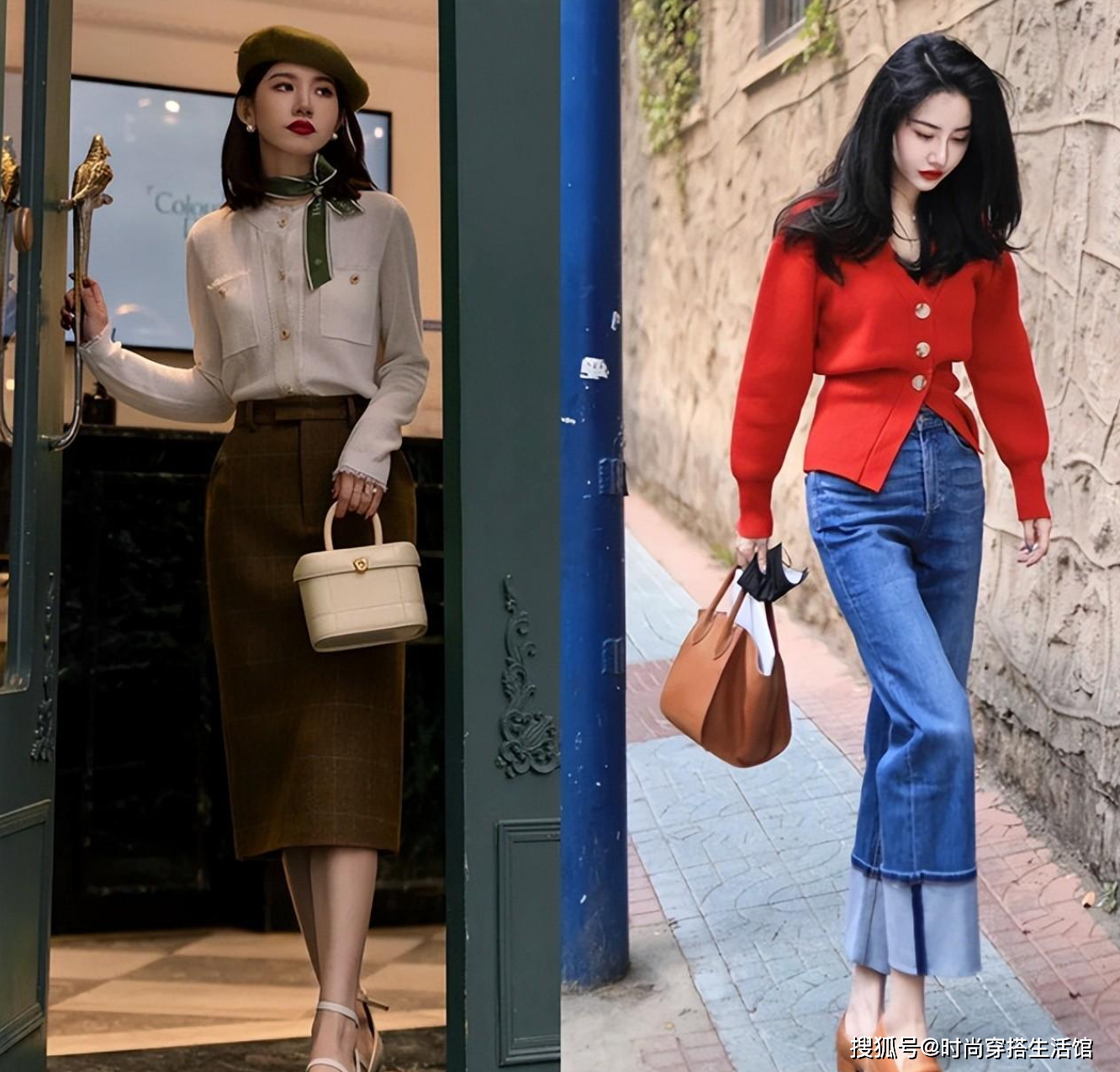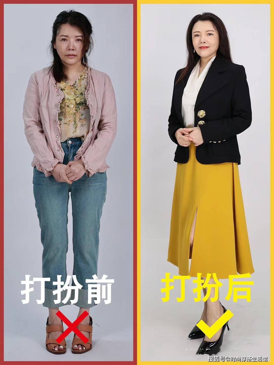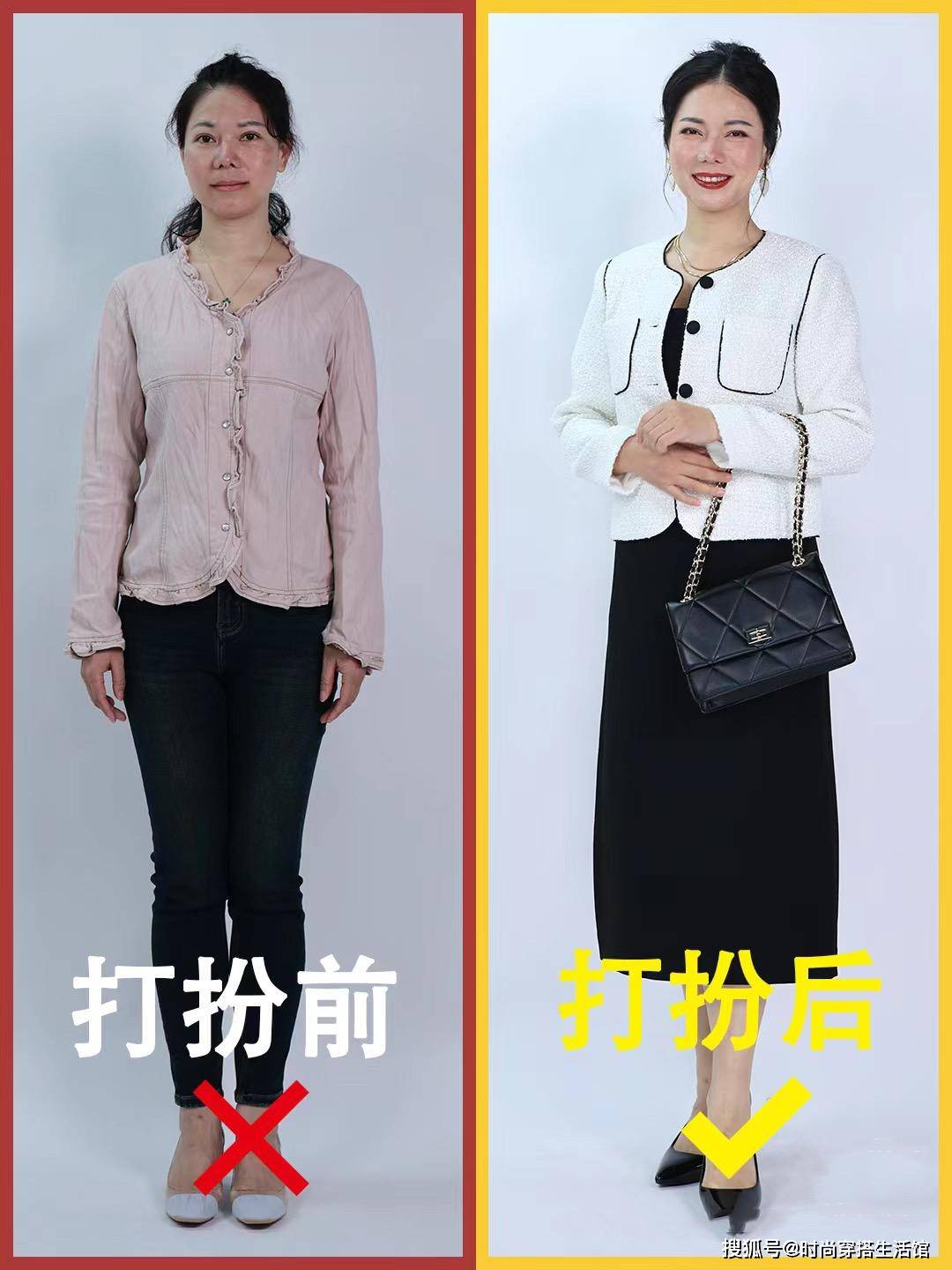 那么就有人会疑惑了,什么是会打扮什么是不会打扮呢?同样的衣服搭配不同的手法,却有明显的区别,下面几个对比图穿搭,看出气质的差距巨大。