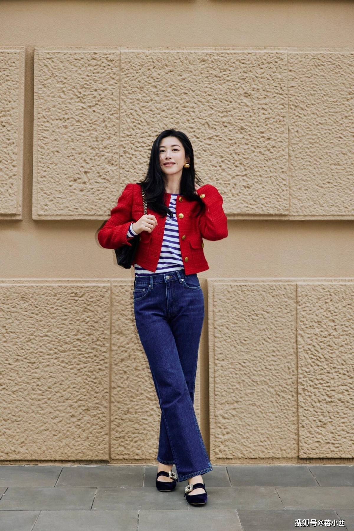 下半身搭配牛仔裤,增添休闲感,使得整体搭配的风格变得更加随性大方,这种基础款搭配也更加实用,通过高腰裤和短外套结合,也可以轻松修饰比例哦。
