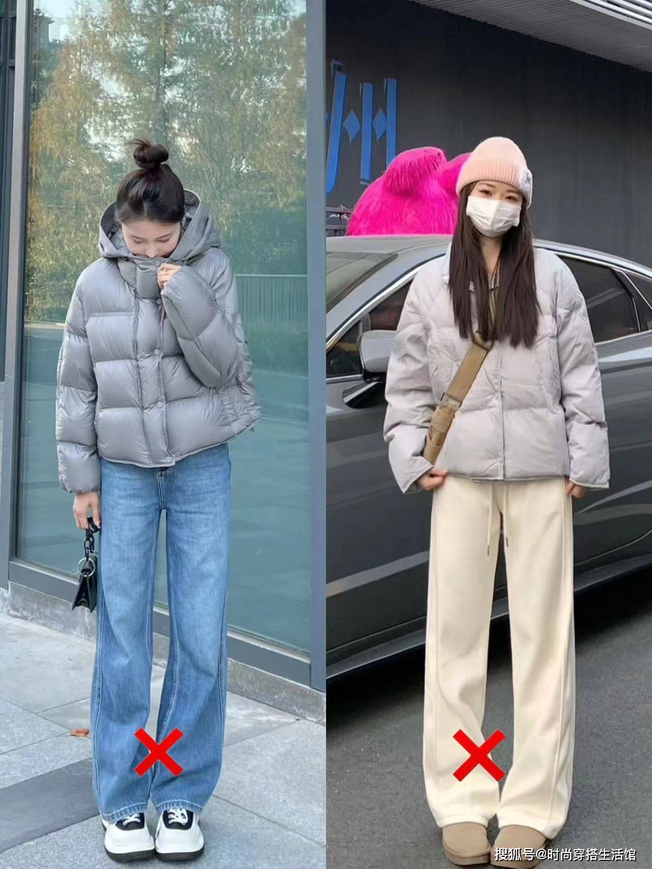身高不足158的女生穿羽绒服,切记别搭这3种裤子,显矮显胖没气质