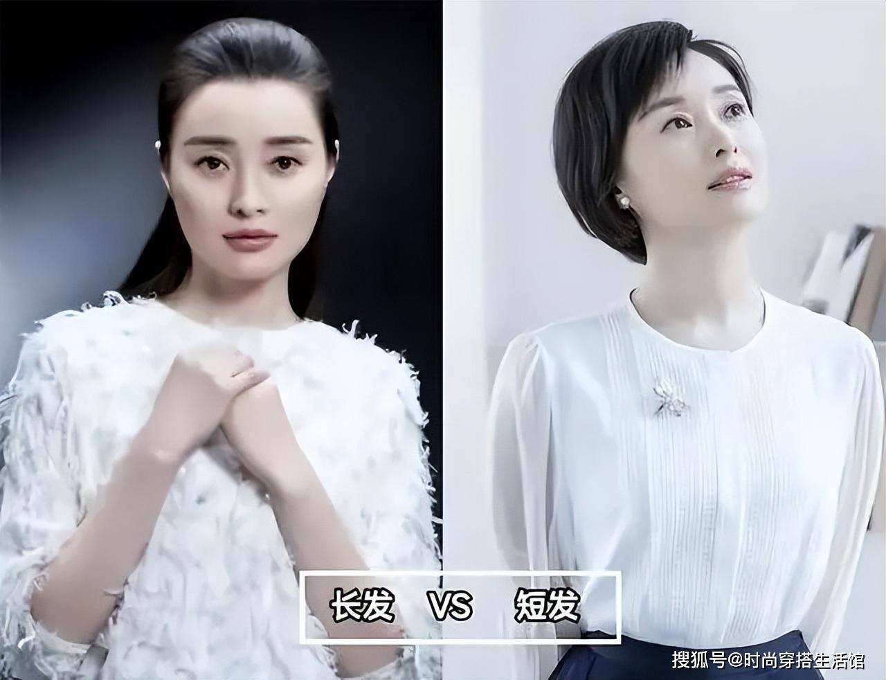 而且吴越无论是选择什么样的发行状态都有一个固定的点,就是在当下这个中年阶段的时候,已经舍弃掉了刘海的运用,正视刘海的搭配,其实有几个比较关键的点就是减龄,而且就是修饰脸型,但其实对于吴越而言,将五官以及整个脸部的状态大体的露出来,才能够衬托美感。