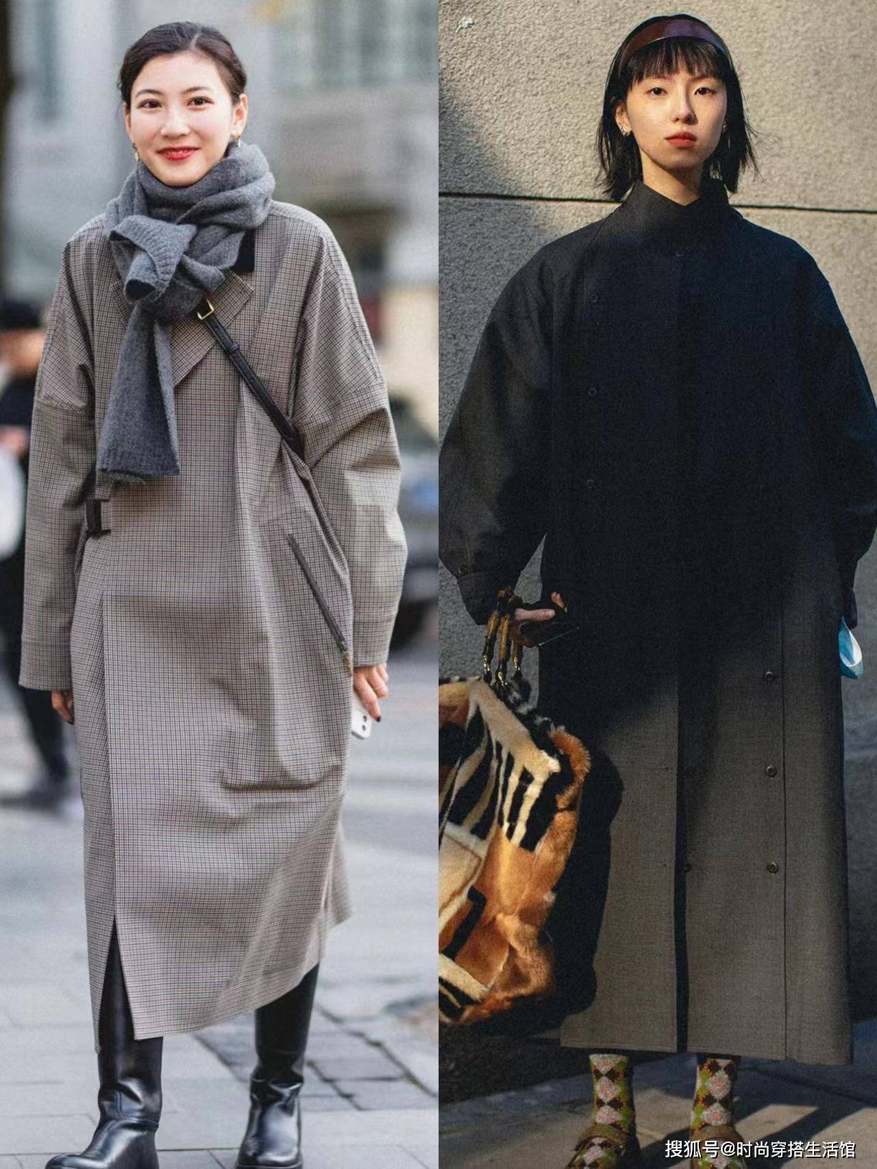 比如左边这种宽大的风衣,看上去太膨胀,容易拉宽身材,骨架小的女孩也撑不起来,反倒是会显得没有气质,而左边这种风衣就很修身,不是特别贴身的款式,所以穿在身上会觉得更知性大方。