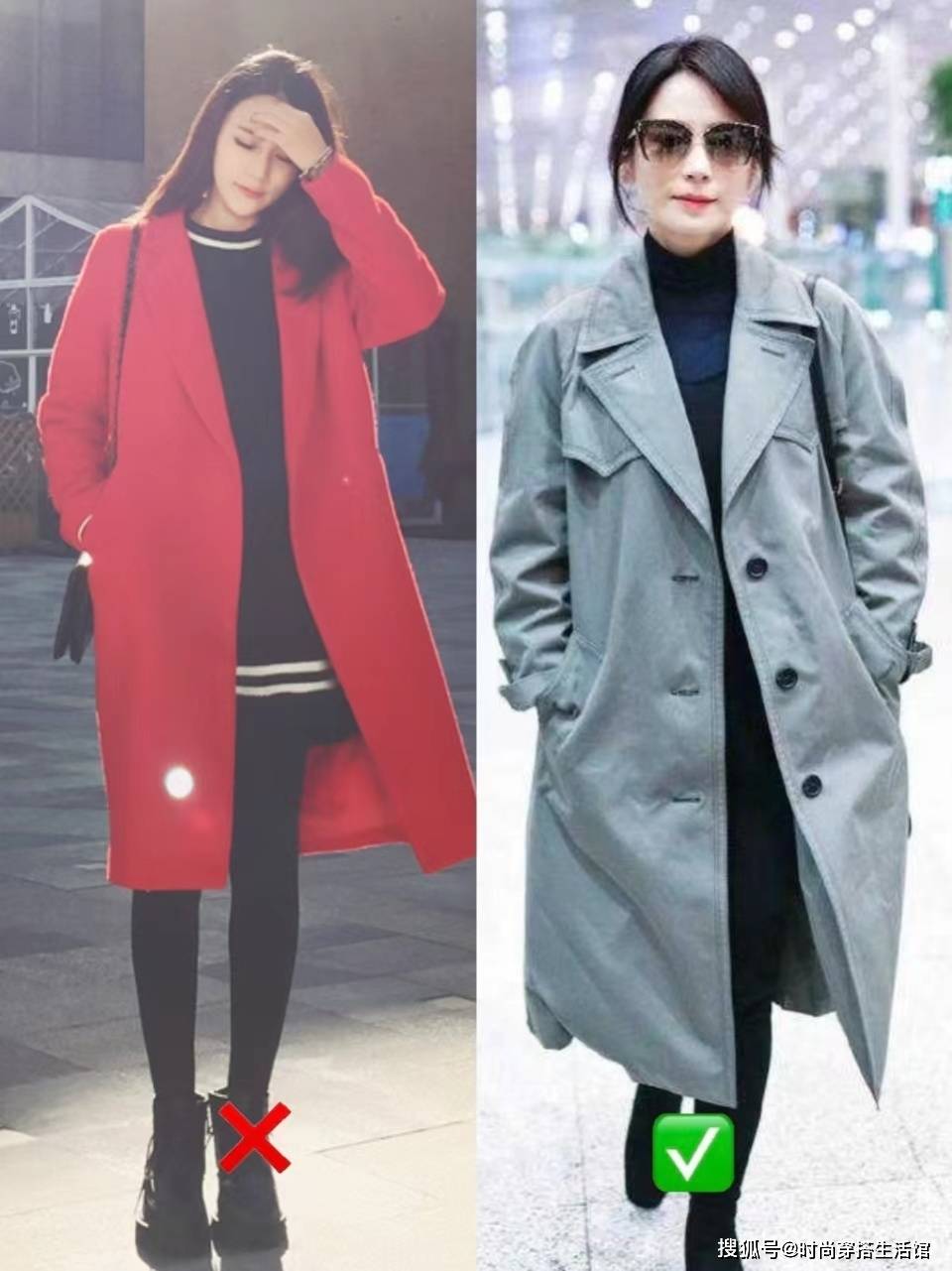 ①风衣配打底裤,暴露腿型缺陷
