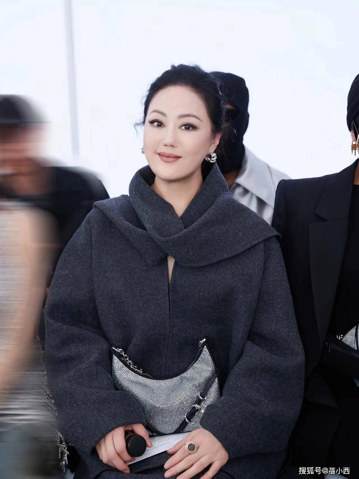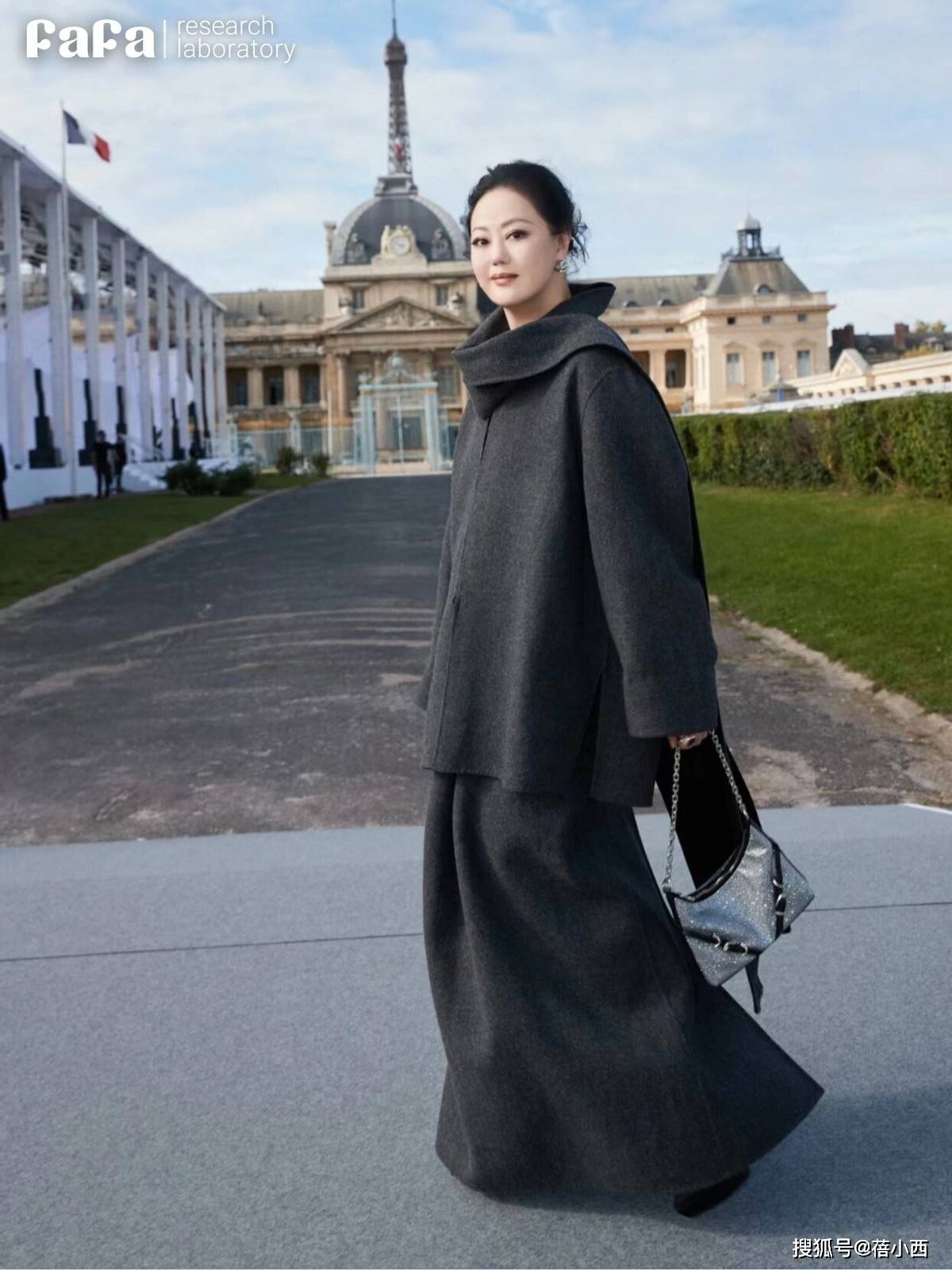若是担心一身灰显单调,可以像章小蕙这样,搭配与灰色色彩接近的黑色包包,告别单调感的同时,又不会破坏灰色高级美,
