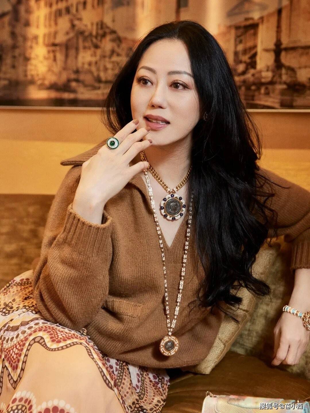 另外,为了进一步保证整体造型的和谐统一,章小蕙还搭配了与半身裙同一风格的项链,促进整体造型一体感的同时,又增添时尚看点,从而更显时尚。