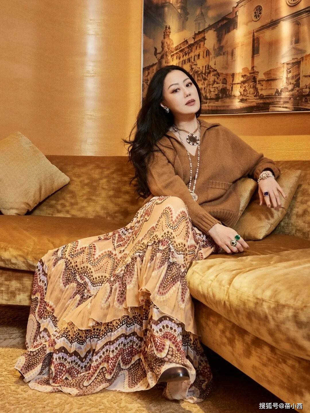 章小蕙带火了一种高级灰穿法:罩衫+长裙+围巾,微胖圆脸真优雅