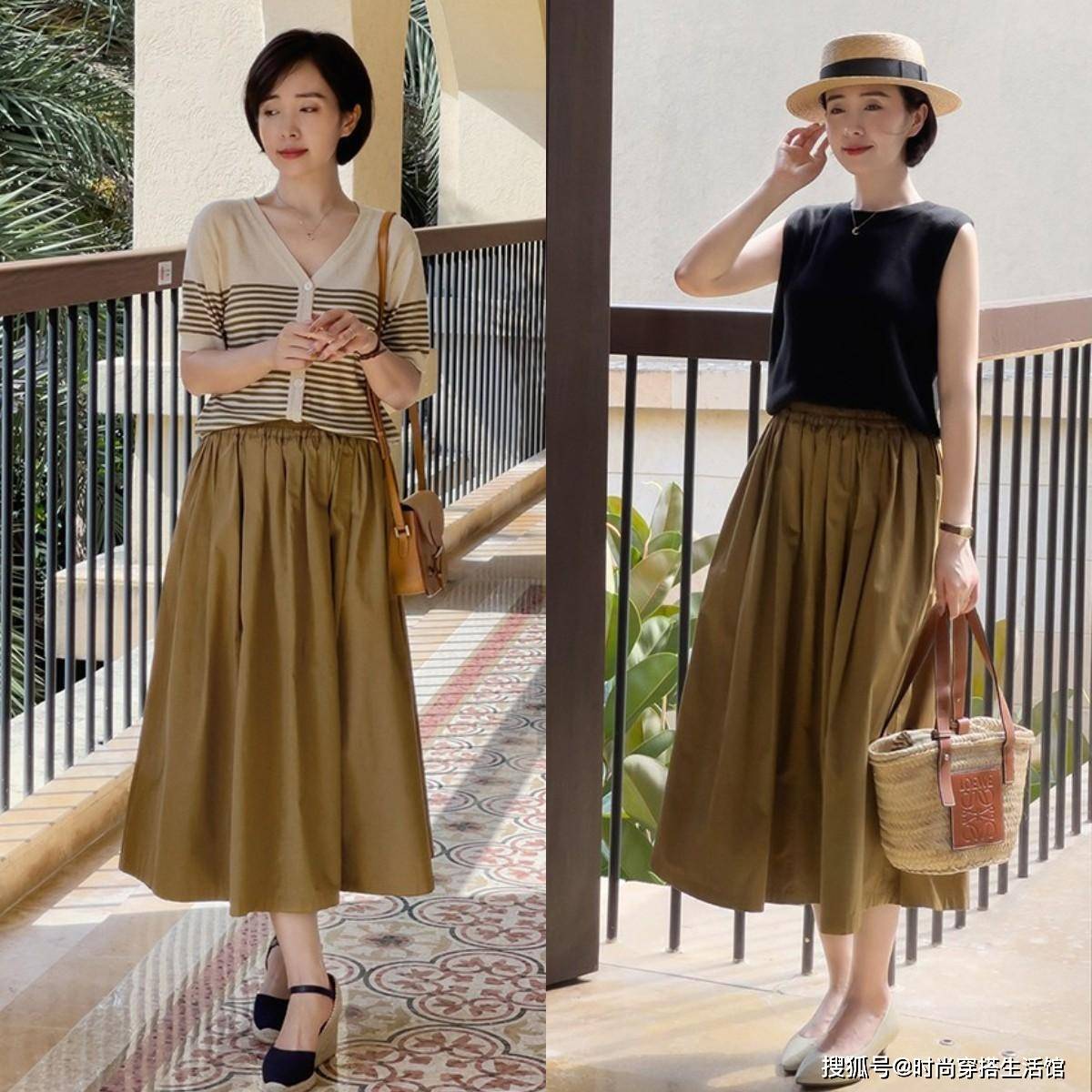 除此之外,在半身裙的颜色挑选上,我们也可以多加注意。如果你更想穿出成熟知性一些的风格,那就可以选择“大地色系”的半身裙,像是上图中的棕色或是卡其色等都是很不错的选择。与半身裙结合在一起,不仅能降低裙装过于柔美的感觉,还能让你的搭配看起来显得成熟稳重。