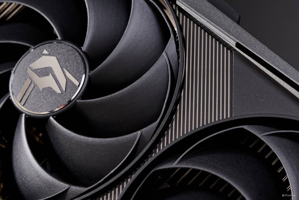 换个方向再欣赏一下iGame GeForce RTX 4080 SUPER火神,经典的后赛博时代风格设计,正面的风扇在通电后,像“镰刀”一般锐利,尽显科技感。