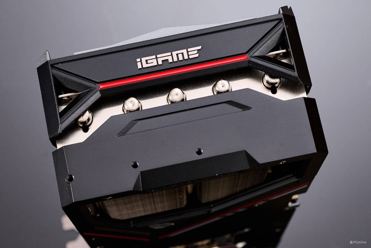 显卡背板设计也很带感,金属一体背板加持,进一步加强显卡强度,金属拉丝工艺加上亮面的iGame Logo与正面的赛博朋克风不谋而合。