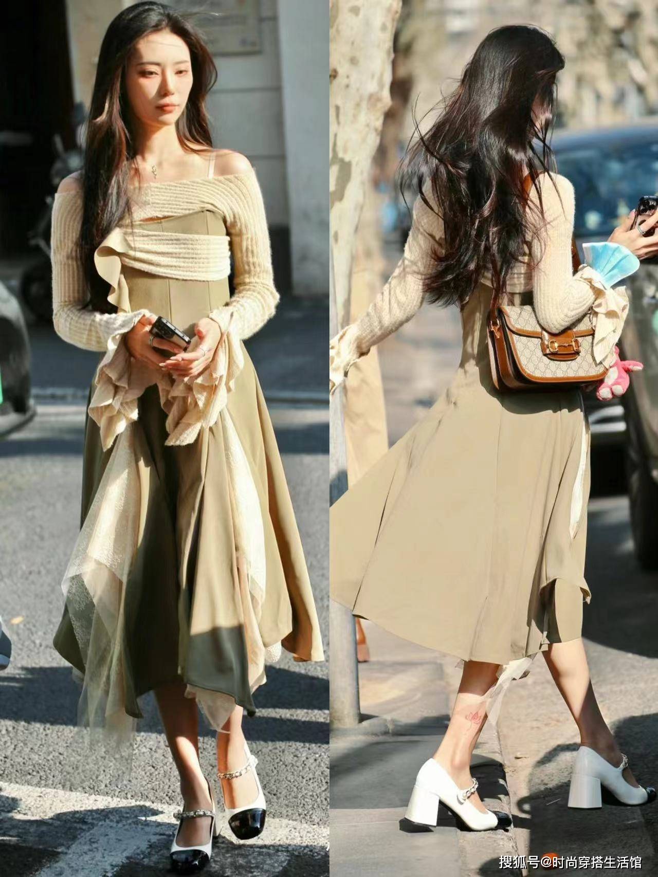 裙子讲究质感,面料与材质会影响到裙摆的形状与穿着的美观度。像图中这条裙子,面料褶皱多、软塌无形,穿起来一下子拉低了高级感,身材再好穿起来也不好看。