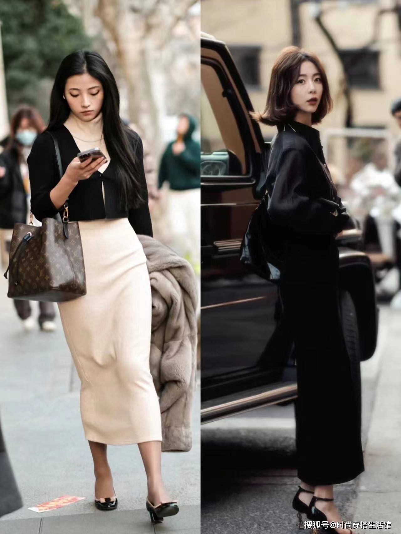 像那些彩色的裙子穿在身上有时候就会觉得显胖,而且彩色裙装对于气质的要求往往也会更高一些,像这种黑色半身裙,经典大方,显瘦效果绝佳!
