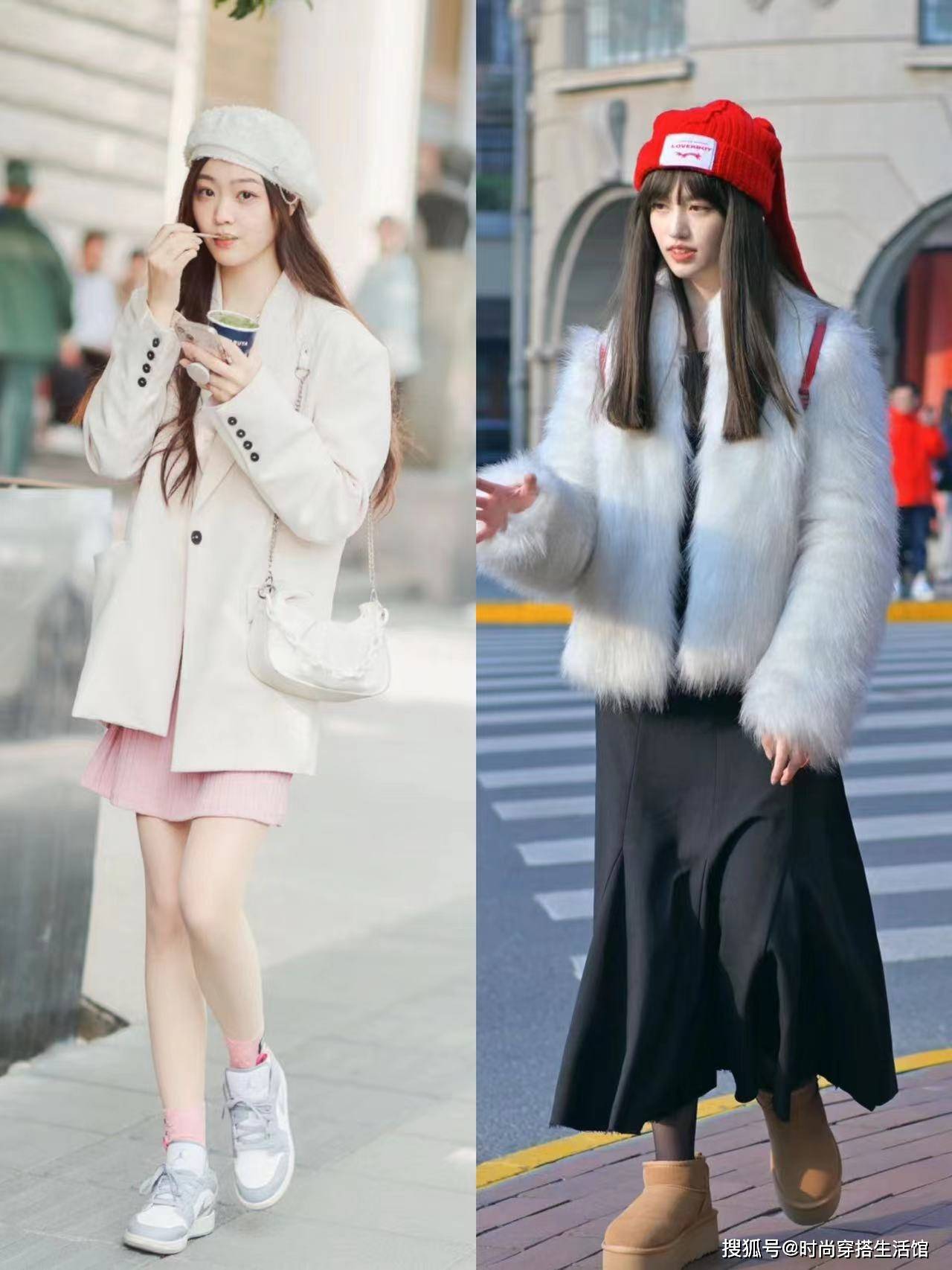 当外套或鞋子的颜色比较暗沉时,裙子可选择亮色或高明度彩色进行提亮。外套,鞋子和裙子之间也可以形成色彩的明暗对比。悄悄告诉你,将亮色放在外套上会更显高哦~