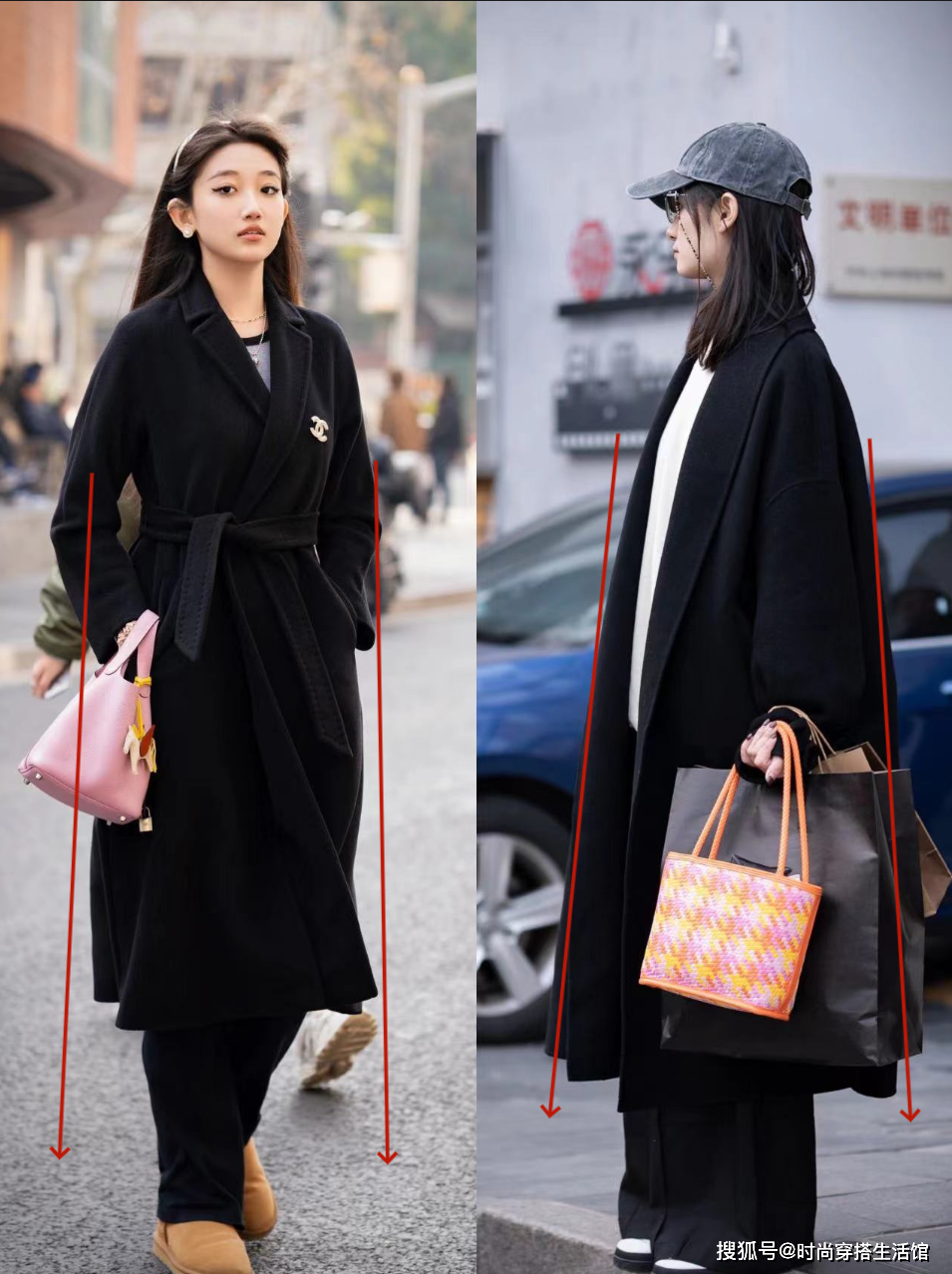 版型宽大的单品都有模糊腰线的缺点,大外套也不例外,对身材高挑的女性来说影响不大,但小个子驾驭起来会吃力点,这时候就要懂得利用腰带来打造出利落的高腰线,造型也会更整洁利落,腰线清晰明了就不怕被拉低比例,而且这样的扎腰带穿法还能展现出身材曲线的美感更加分。