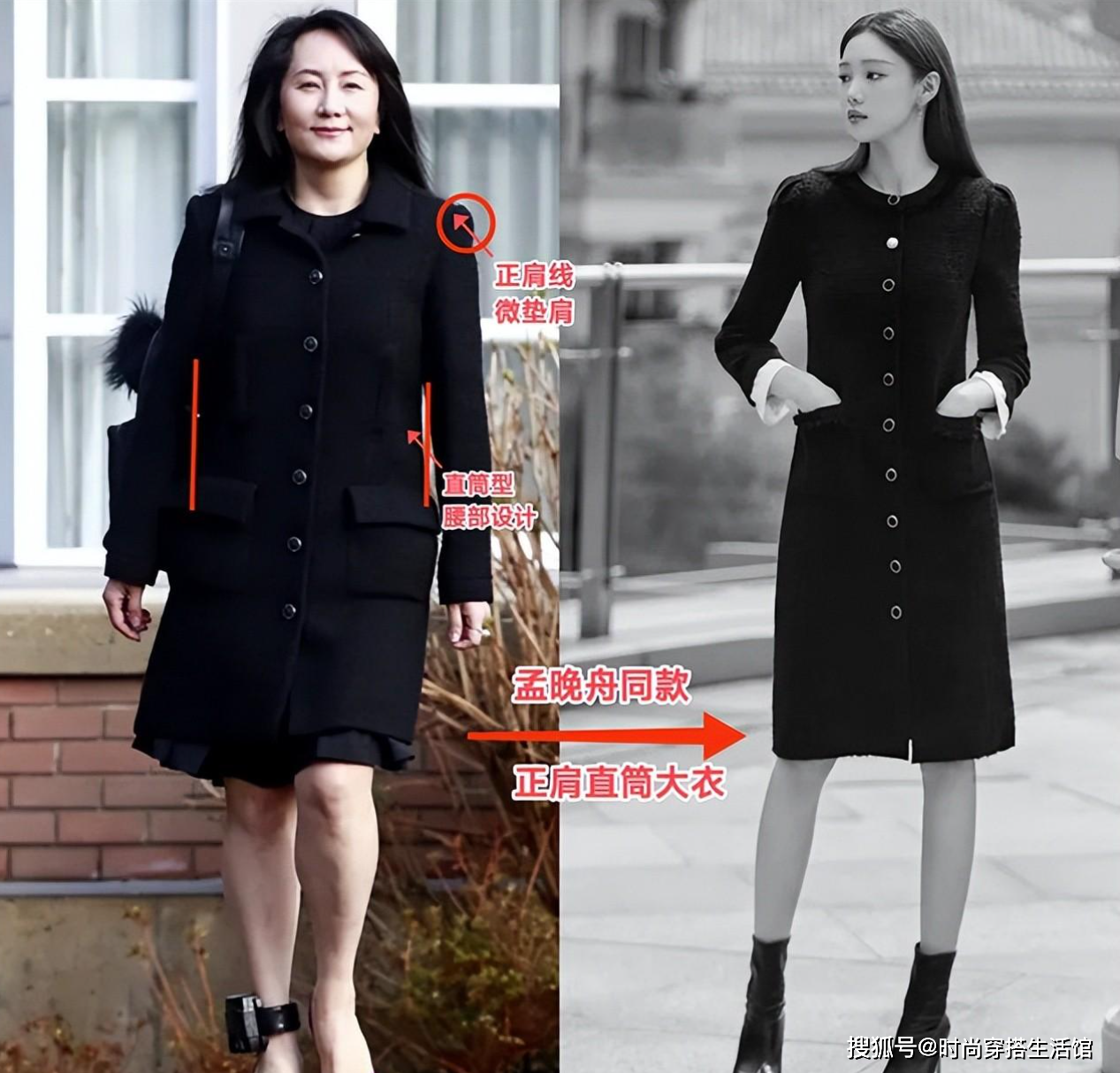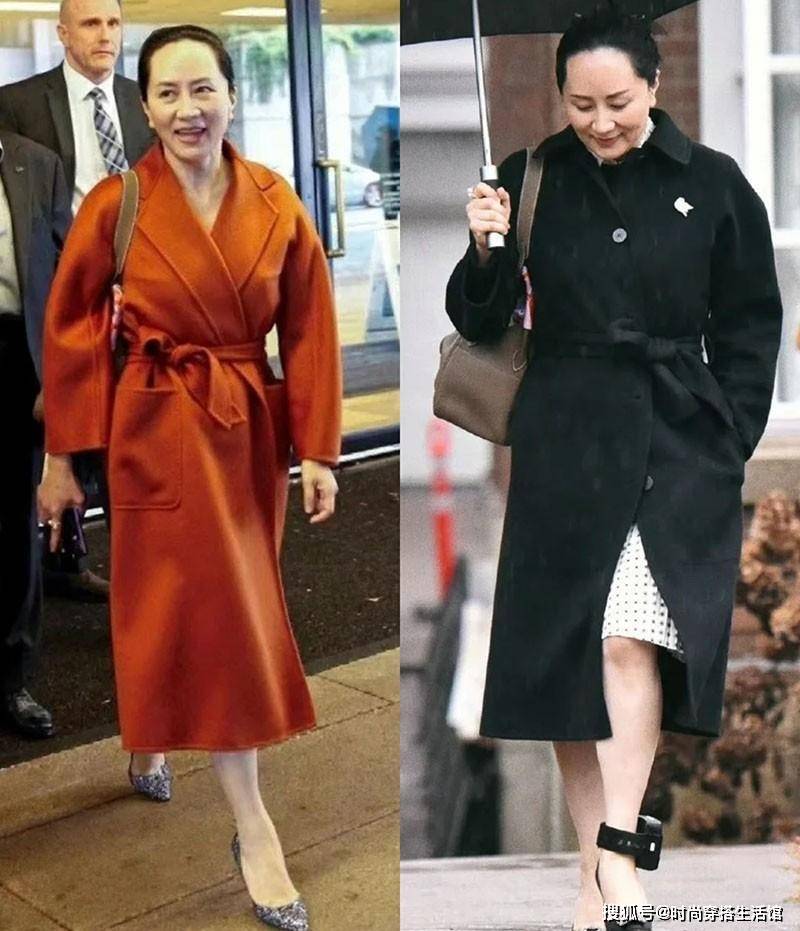 搭配裙装,显得既端庄又优雅。孟晚舟经常以此款大衣配合各种风格的裙装,无论是优雅的连衣裙还是简洁的包臀裙,都能展现出独特的魅力。