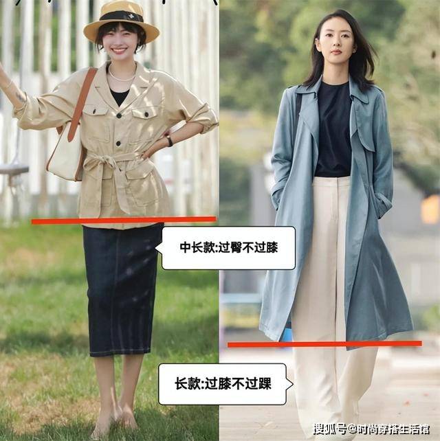 不管你是选短风衣还是长风衣,在挑选时都最好在腰部融入收腰的设计,这个细节设计是最有利于帮助我们去调节身材划分比例的,像上面这种长款风衣,腰间搭配上腰带,收缩腰围,就可以很好的调节曲线。