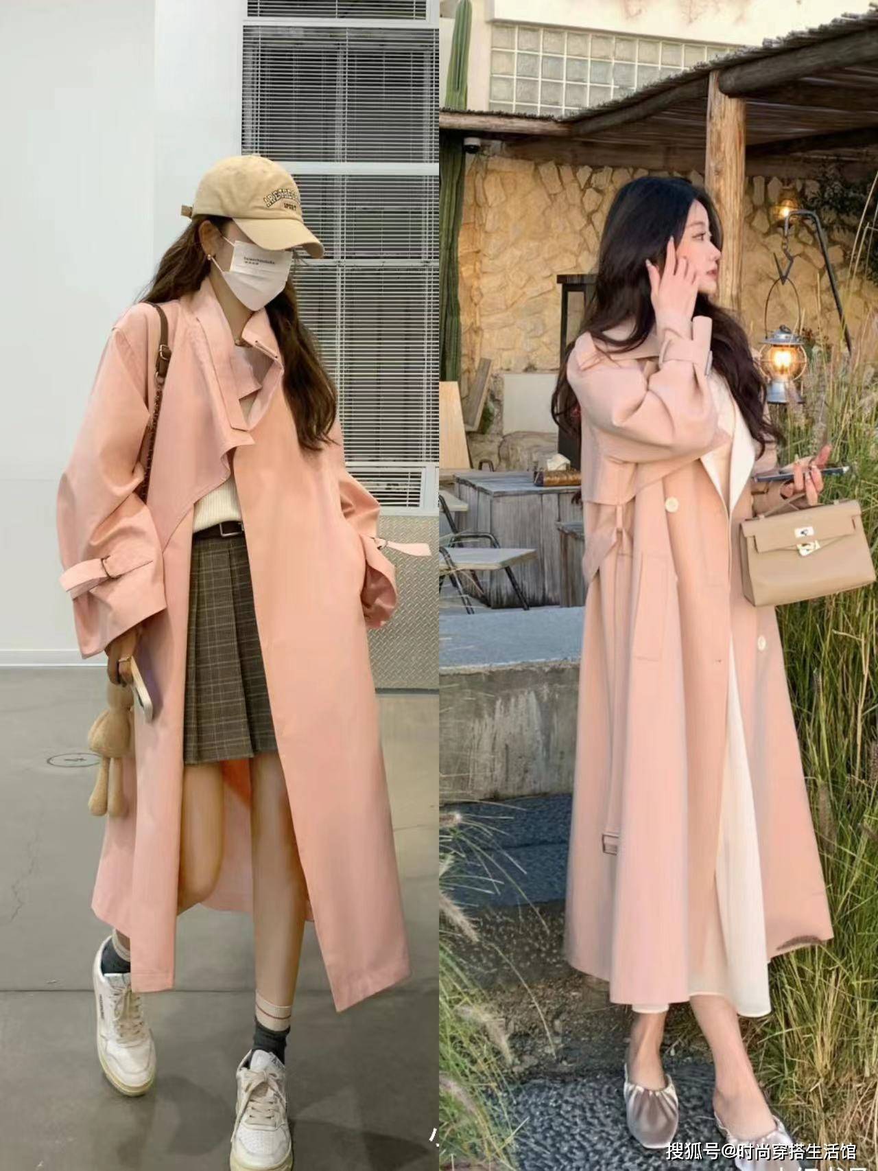 想要通过穿风衣来扮嫩,那粉色风衣就是你的one pick,这种时髦的浅粉色或者是蜜桃粉都是打造出少女感的利器,粉色系的单品总给人一种很甜美,很浪漫的感觉,所以我们在挑选时也可以尝试这种饱和度不是那么高的粉色系风衣。