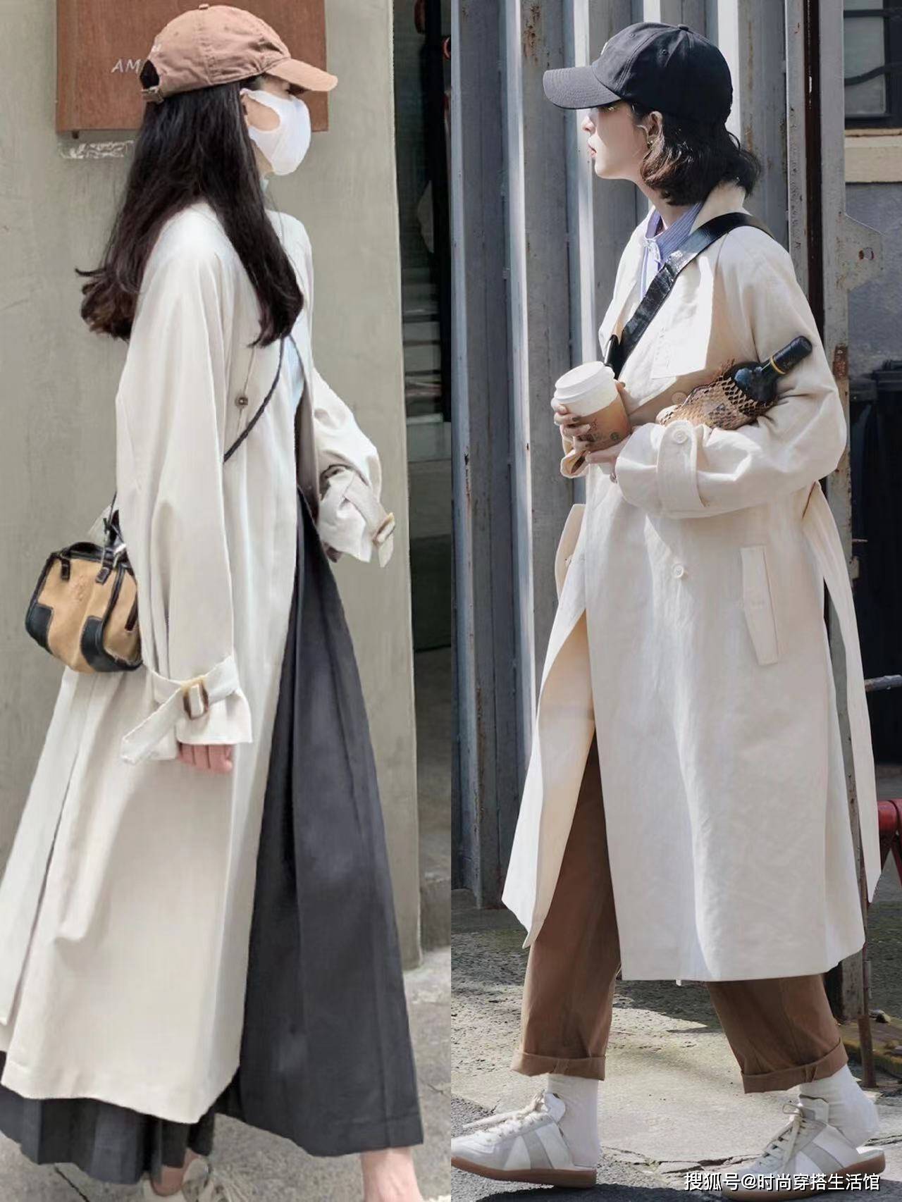 上图博主选择的米白色风衣外套,除了西装领和袖口设计,整体风格十分简约,长度在小腿肚上下,藏肉显瘦,还显得整个造型十分飘逸灵动!