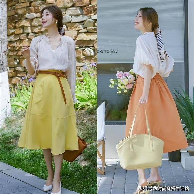 平底鞋+半身裙搭配最大的优点就在于它的“舒适度”,好穿好搭配,不会像高跟鞋那样挑人难驾驭。而且,春日本就是一个休闲惬意的季节,正好能和这组搭配的风格感相互映衬。