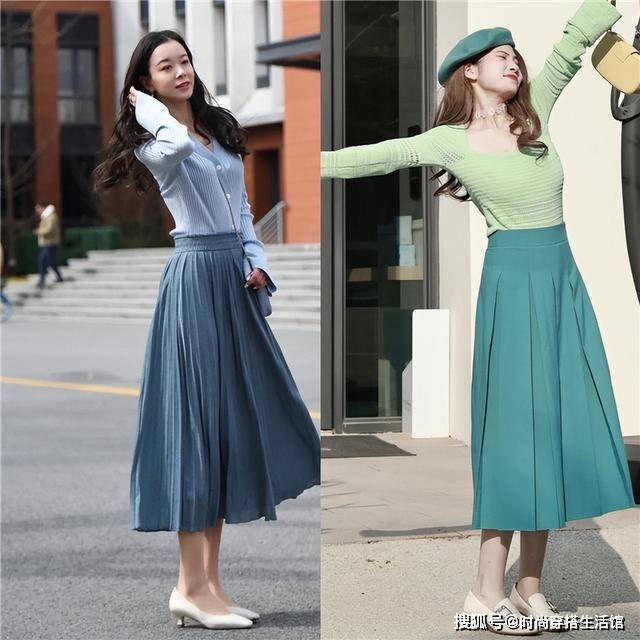 百褶裙的搭配其实就更推荐大家可以选择浅口系列的低跟鞋组合起来,这样的话整体的走向是偏向于透气感比较足,同时对于腿型的不足也能够完整的进行掩盖,浅口的系列带着一定的拉伸感,显瘦又显腿长的视觉效果。