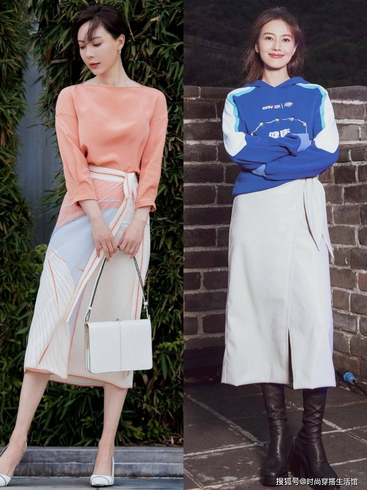 春季穿搭,我们不能穿得太过厚重累赘,否则就会清除春季原有的灵动感与氛围感。此时,我们不仅不能挑选裙长超过脚踝的半身裙,还要进行适度的“留白”。