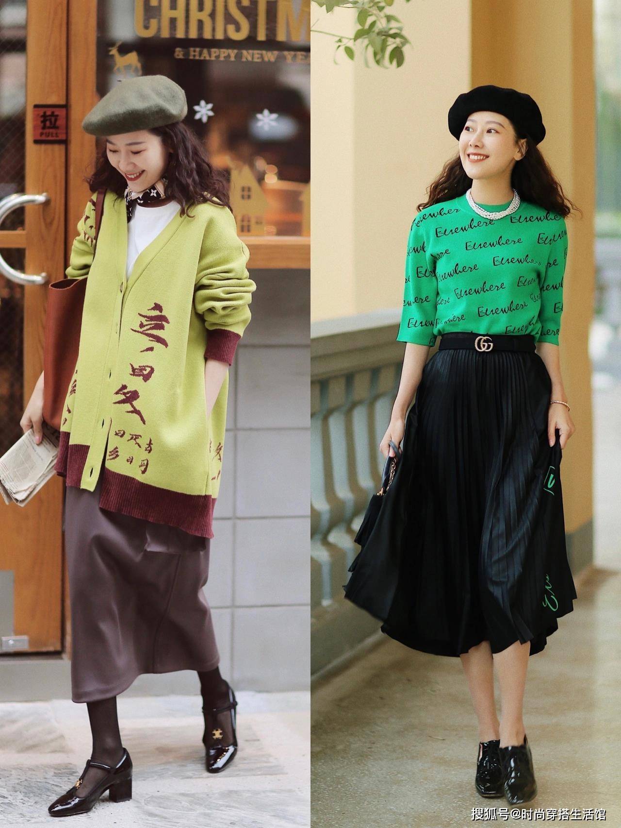 想将“半身长裙+低跟鞋”的搭配穿出时髦感,还需要掌握一些小技巧。想要更好地塑造风格,在整体造型的“颜色”上就要多加注意。喜欢简洁一些的风格,推荐尝试一下“顺色”搭配,用相近或相同色系的半身长裙和低跟鞋搭配,打造出“同色系”的既视感。