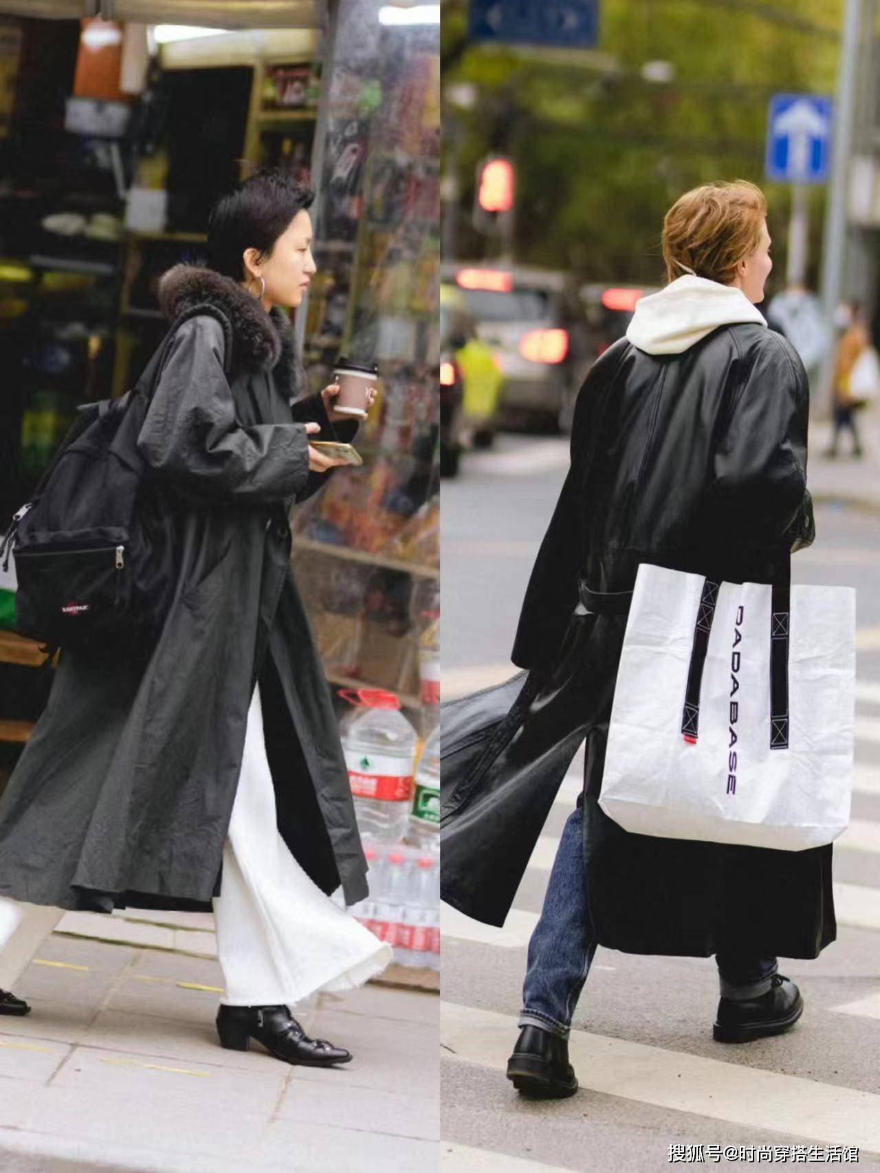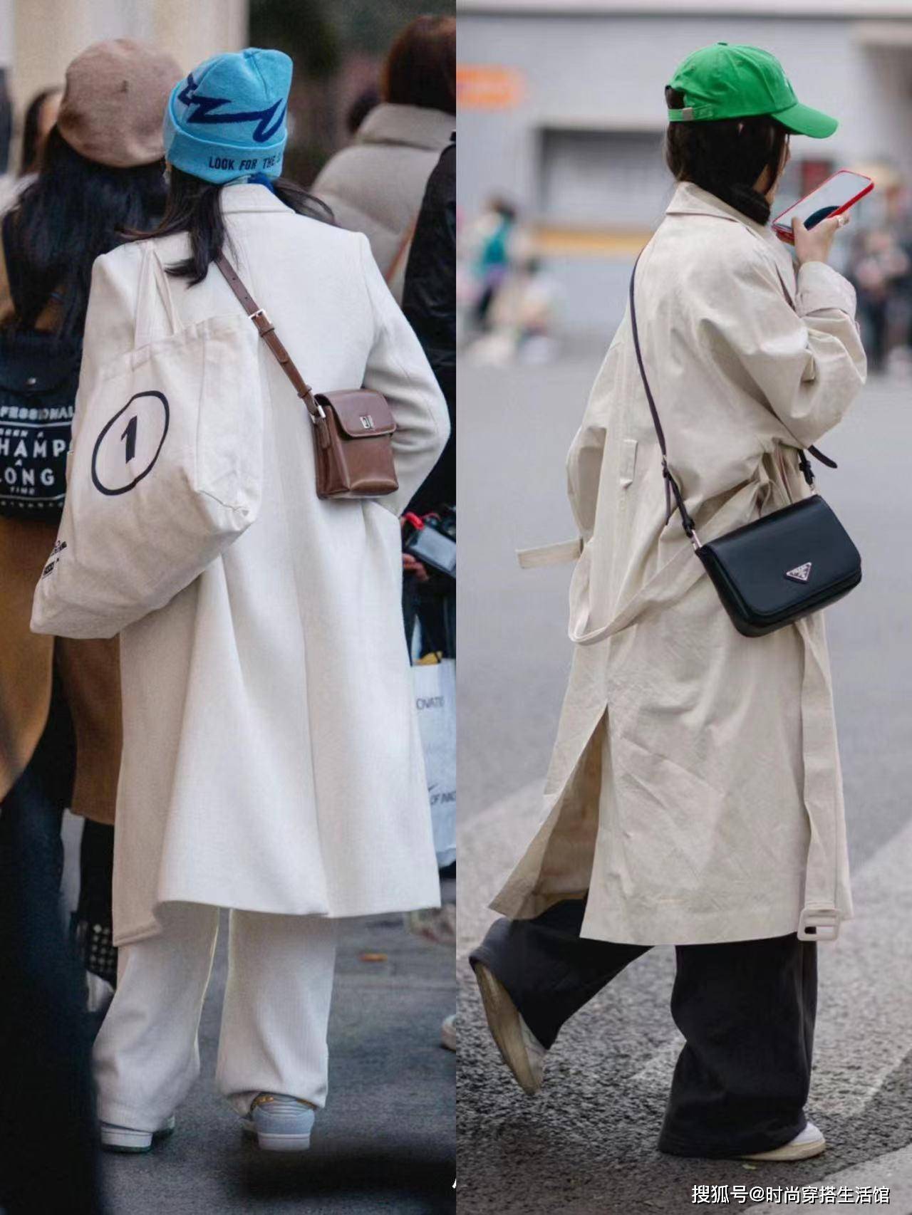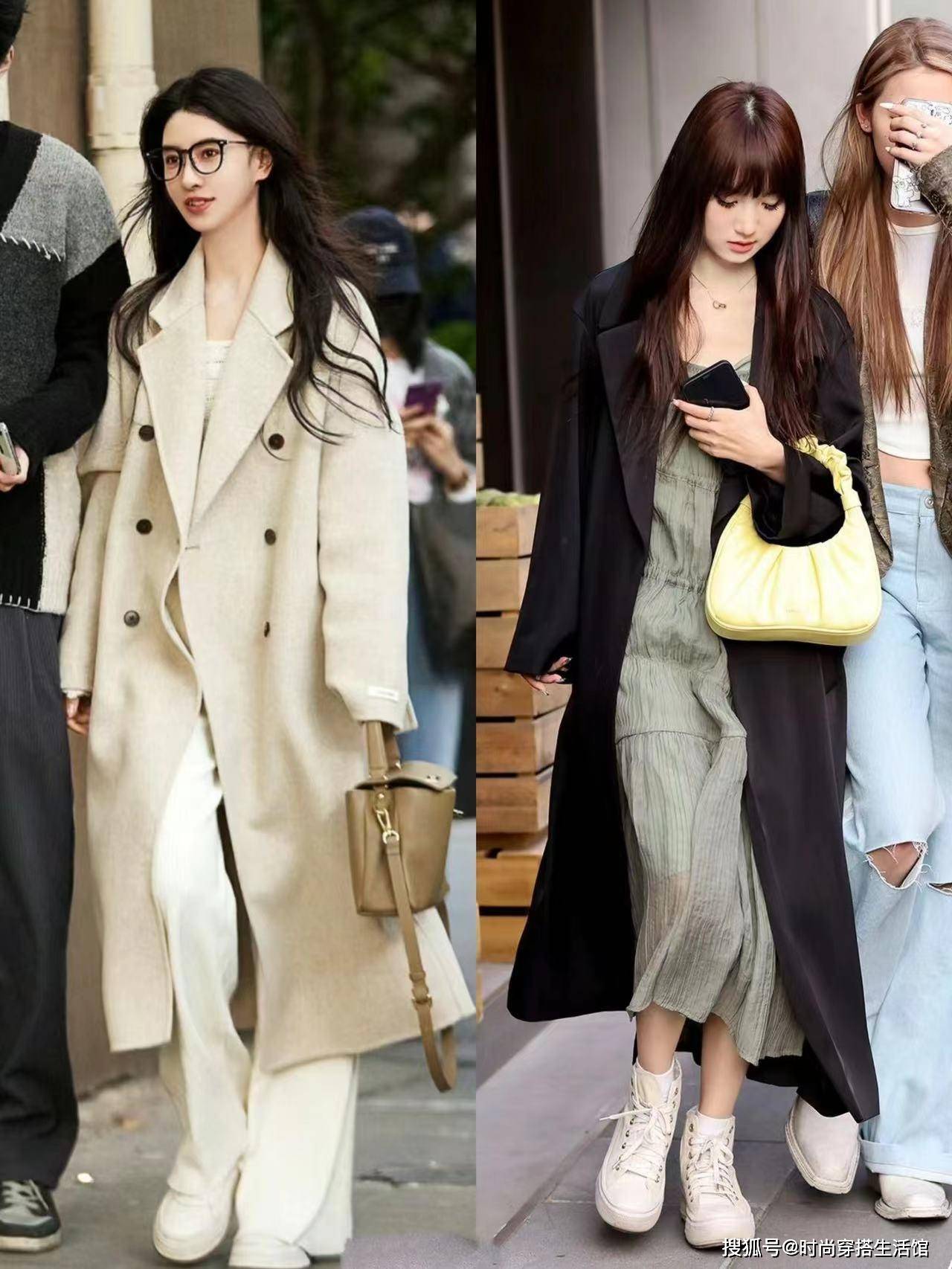 在春夏季节的街头,常见上海女性运用大衣来展现独有的气质。其中,有一种组合,尤为抢眼——过膝盖长度的风衣与拖地喇叭裤的搭配。