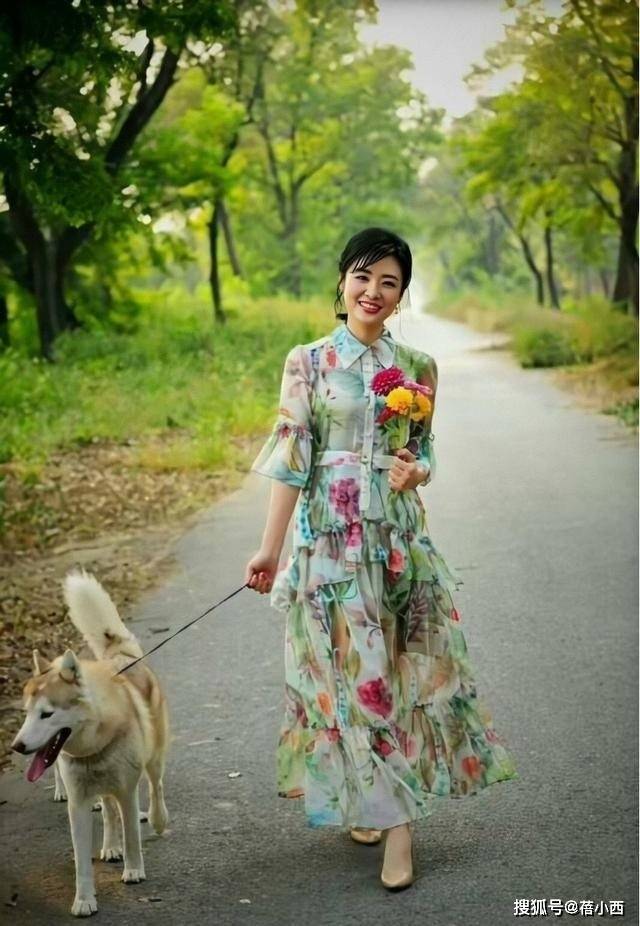 周涛去遛狗带火了贵妇穿搭:印花连衣裙+麻花辫,55岁美出新高度