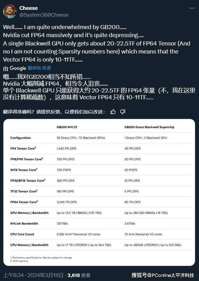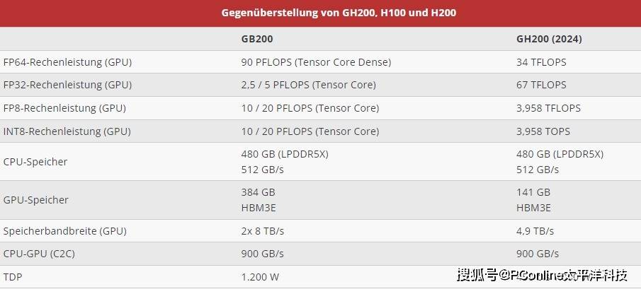 GB200与GH200(2024)重点参数对比 图片源自于网络