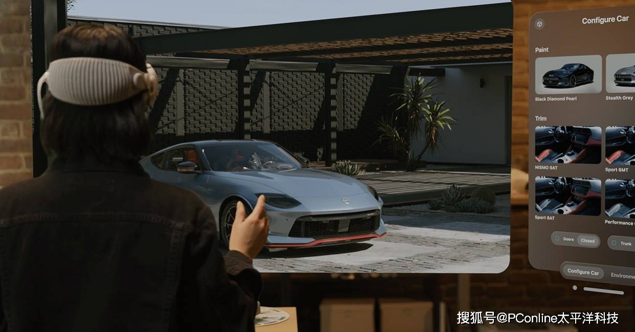在GTC大会上上,NVIDIA展示了设计师如何利用Vision Pro中的汽车配置工具操作车辆模型,并能够以虚拟的方式“进入”车辆内部进行查看。这种交互是通过Omniverse Cloud API实现的,此外,图形内容还可以通过云计算服务直接流式传输至Vision Pro,实现高效的图形传输网络服务。