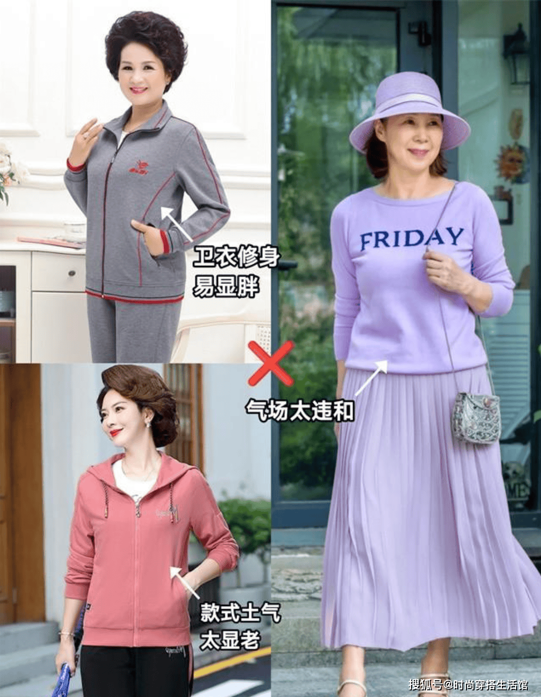 卫衣主要强调的是穿着舒适性和风格稳定性,大多数款式材质比较厚实,版型比较宽松。而大部分中年女性身材都容易发福,若是再穿卫衣的话反而会显胖显臃肿,暴露身材问题。并且卫衣很难拿捏好减龄的尺度,若是款式花哨颜色鲜艳,穿起来反而有装嫩嫌疑。