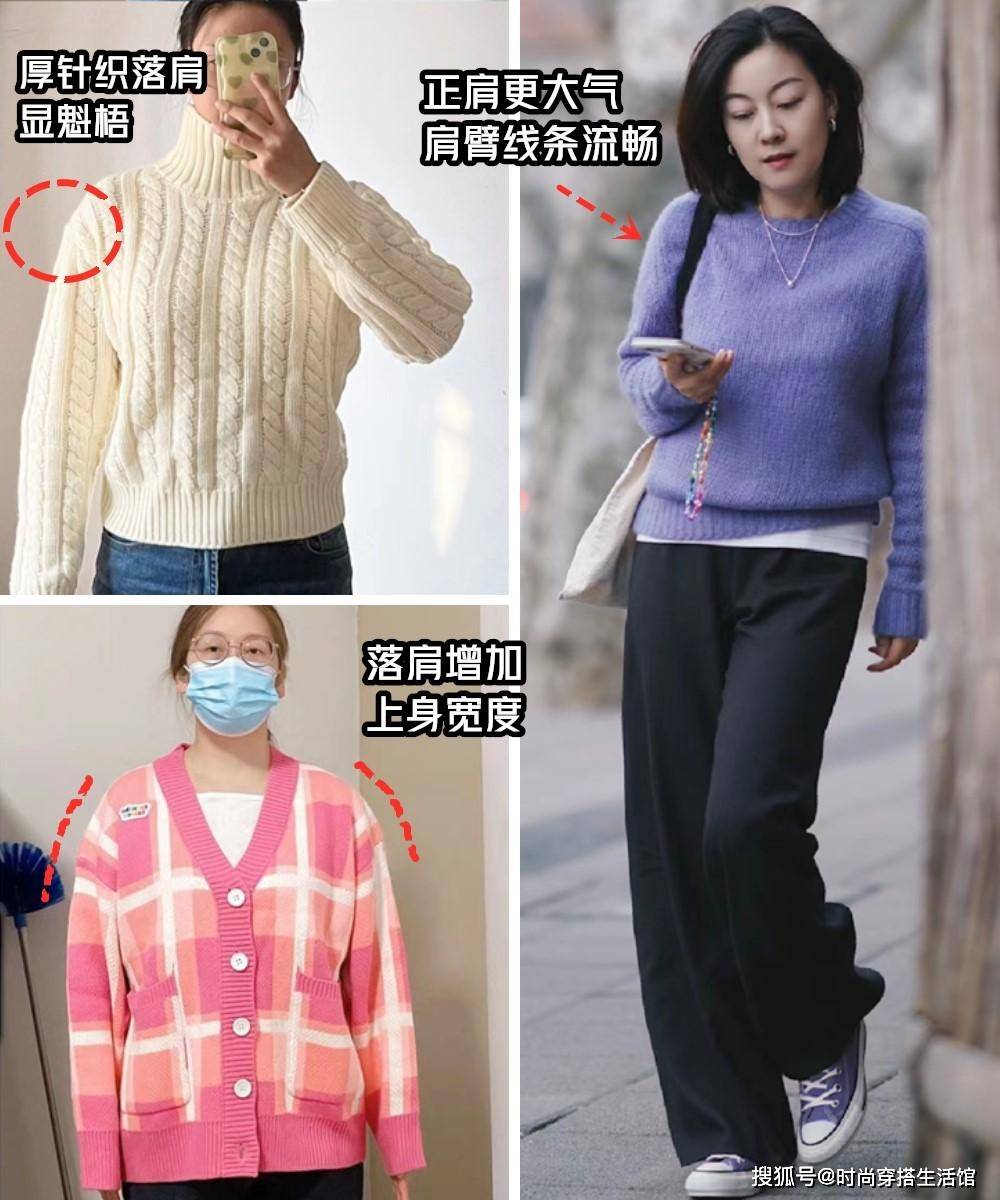 对于肩宽的女生来说,她们总是会担心穿衣会显壮实,虎背熊腰的就像女汉子,因此如果是肩膀宽的人,建议不要选择面料太厚实的针织衫,反而是轻薄款更适合。