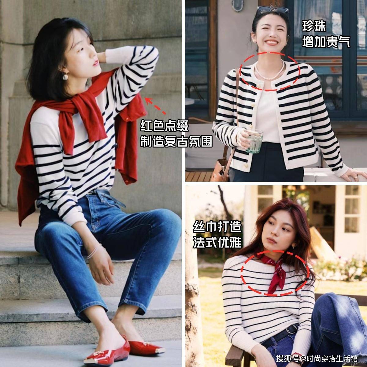 要点:选细不选错,选简约不选择繁复,选竖型条纹不选择横条纹,才是最正确的搭配方式。