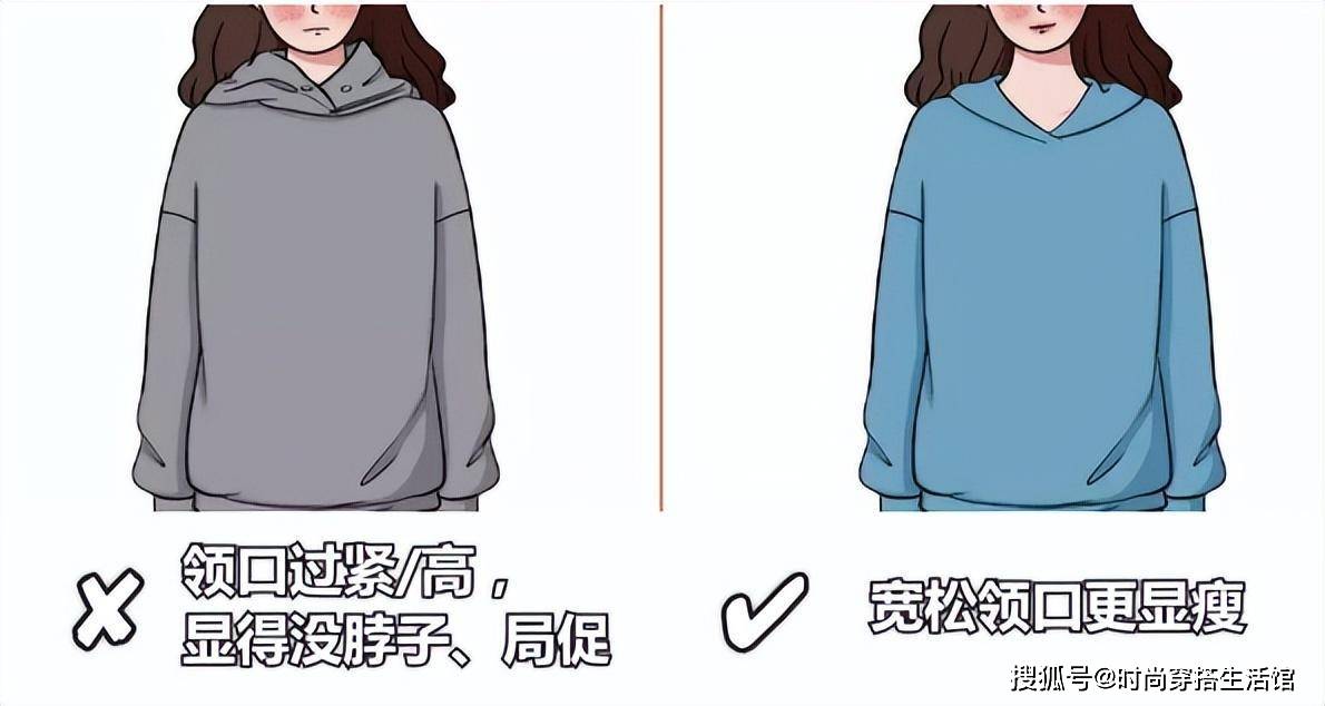 ①避免领口过于紧绷或者宽大