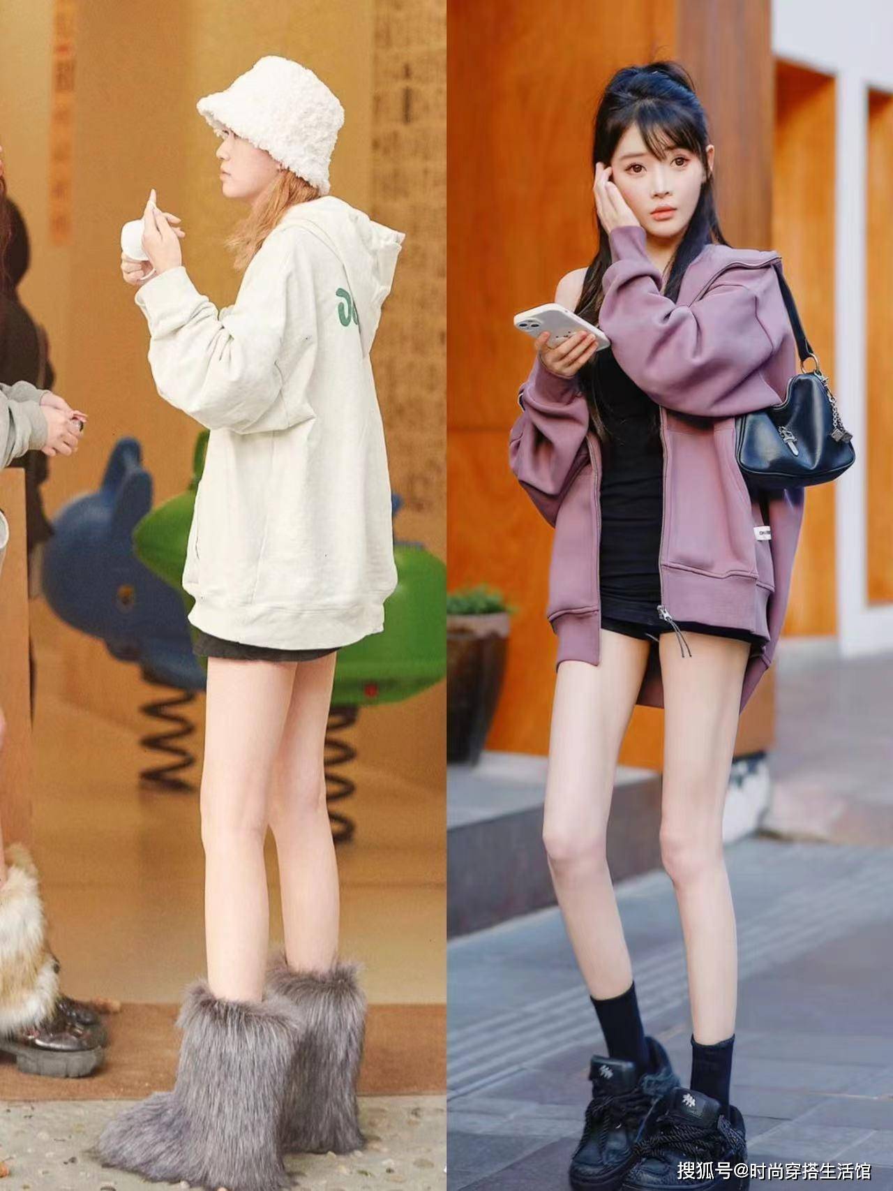 思路①叠穿卫衣,演绎保暖时髦两不误